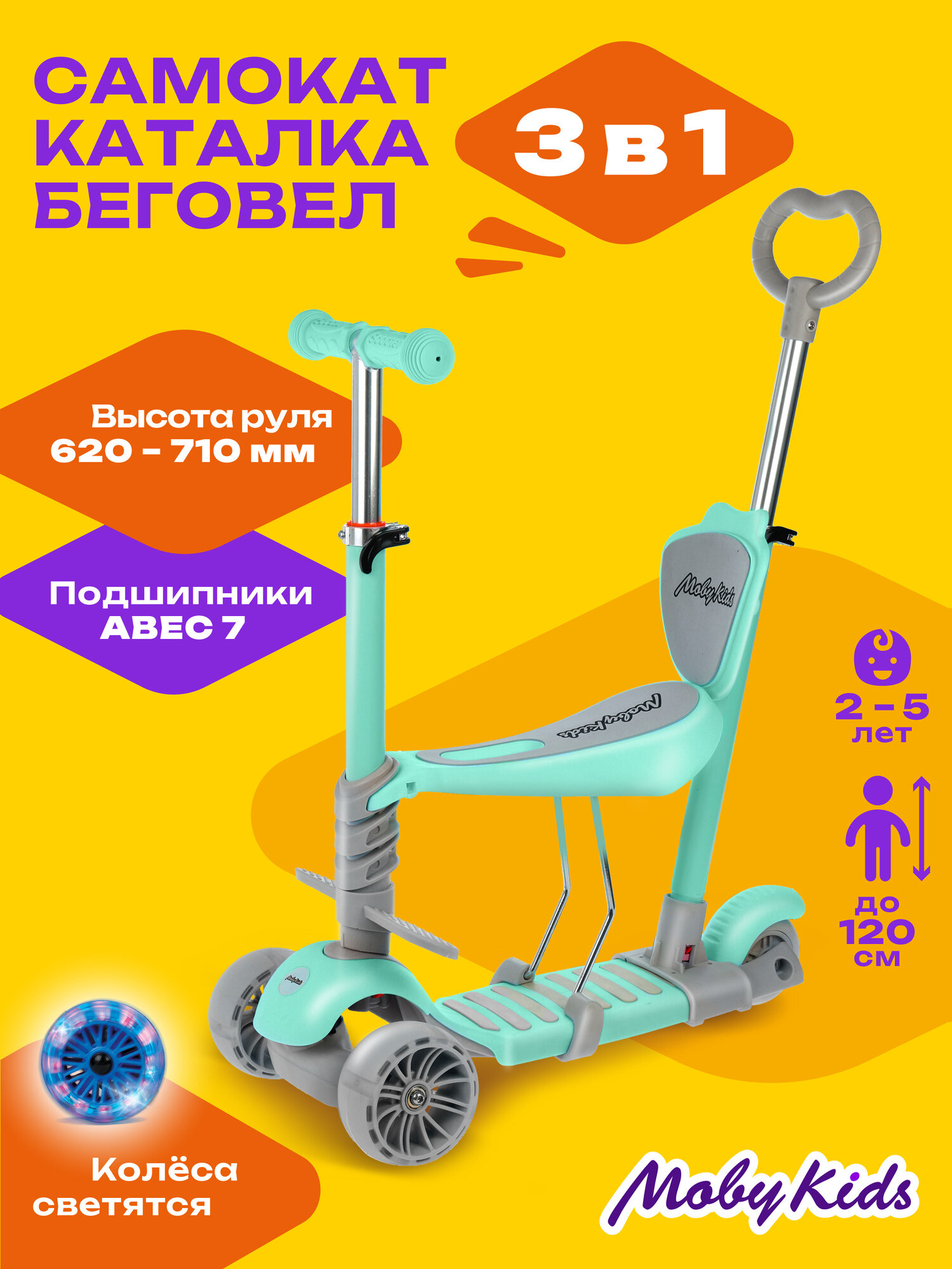 Купить Самокат детский трехколесный Moby Kids «Pony» 3 в 1, колёса PU со светом, мятный с доставкой по всей России. Самокат детский трехколесный Moby Kids «Pony» 3 в 1, колёса PU со светом, мятный: сравнение цен, характеристики, фото, актуальное наличие и цены.