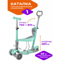 Самокат детский трехколесный Moby Kids "Pony" 3 в 1, колёса PU со светом, мятный