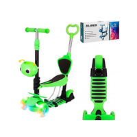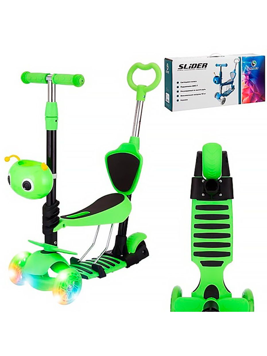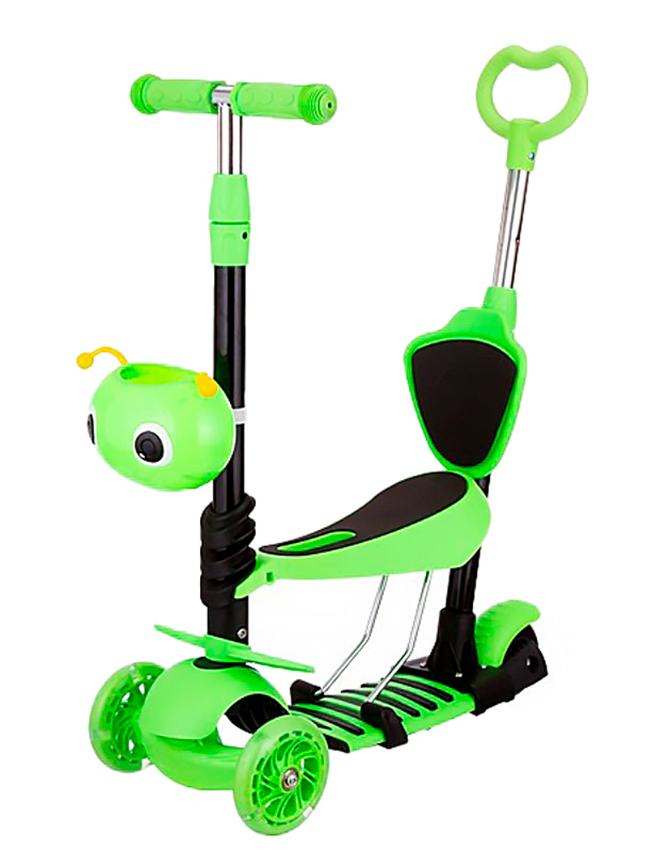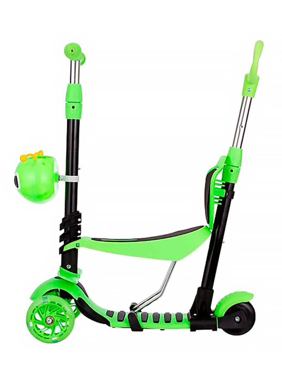 Самокат детский трехколесный с родительской ручкой управления и сиденьем, передние колеса: PU со светом, зеленый: сравнение цен, характеристики, фото, актуальное наличие и цены.