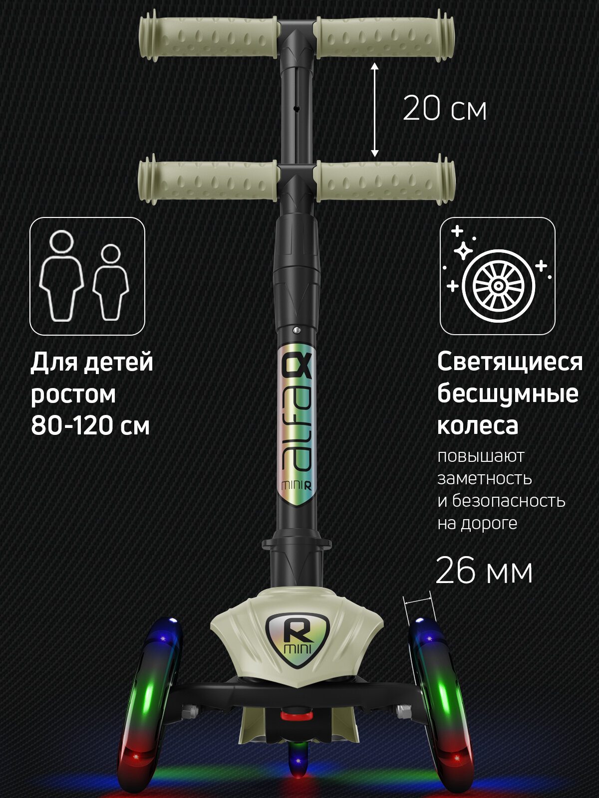 Самокат детский трехколесный со светящимися колесами и наклейками Alfa Mini R Light от Buggy Boom: сравнение цен, характеристики, фото, актуальное наличие и цены.