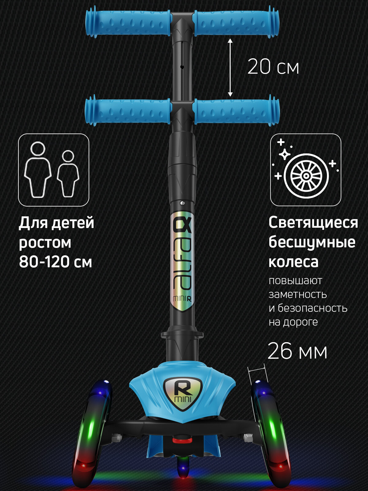 Самокат детский трехколесный со светящимися колесами и наклейками Alfa Mini R Light от Buggy Boom: сравнение цен, характеристики, фото, актуальное наличие и цены.