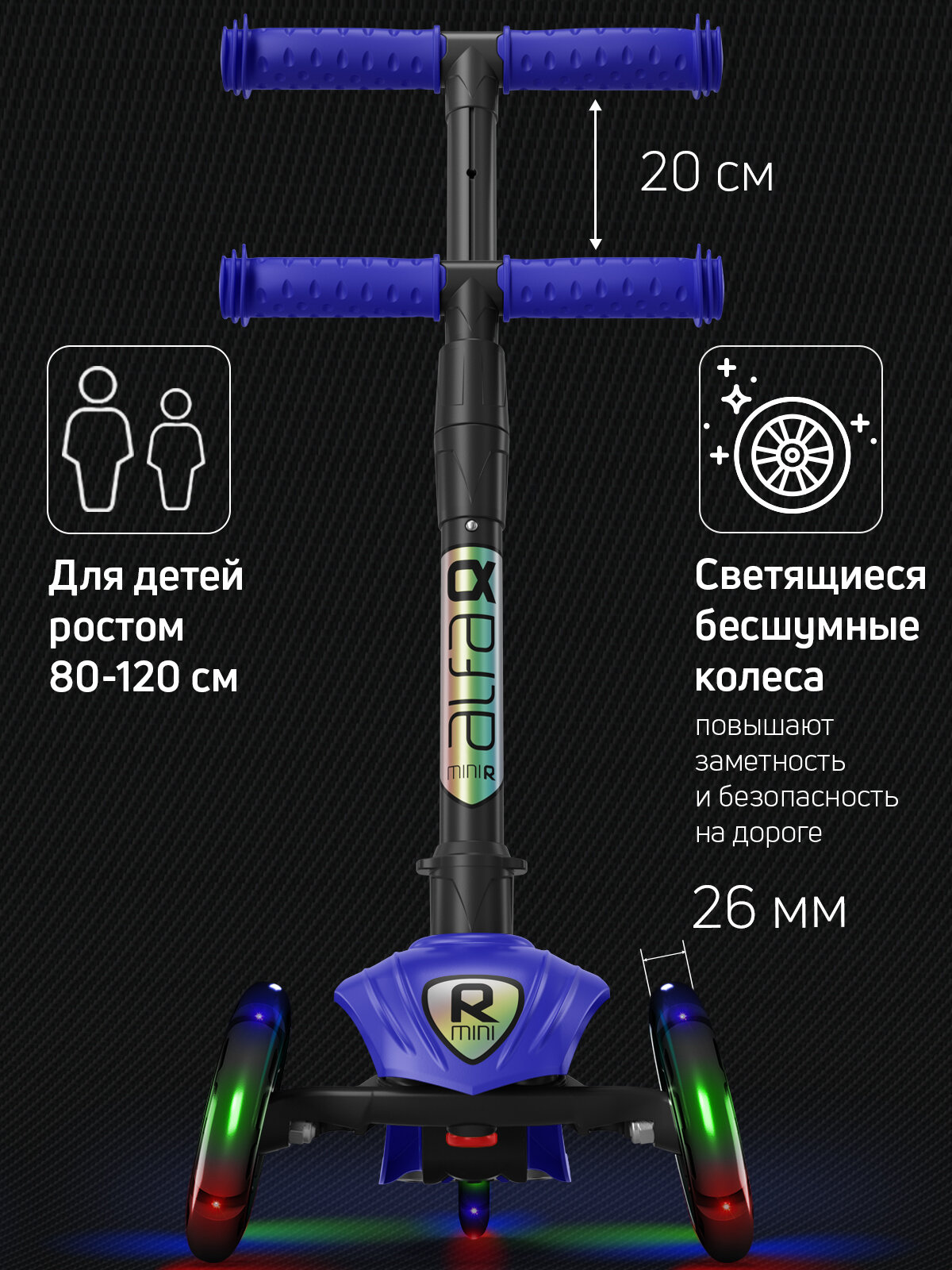 Самокат детский трехколесный со светящимися колесами и наклейками Alfa Mini R Light от Buggy Boom: сравнение цен, характеристики, фото, актуальное наличие и цены.