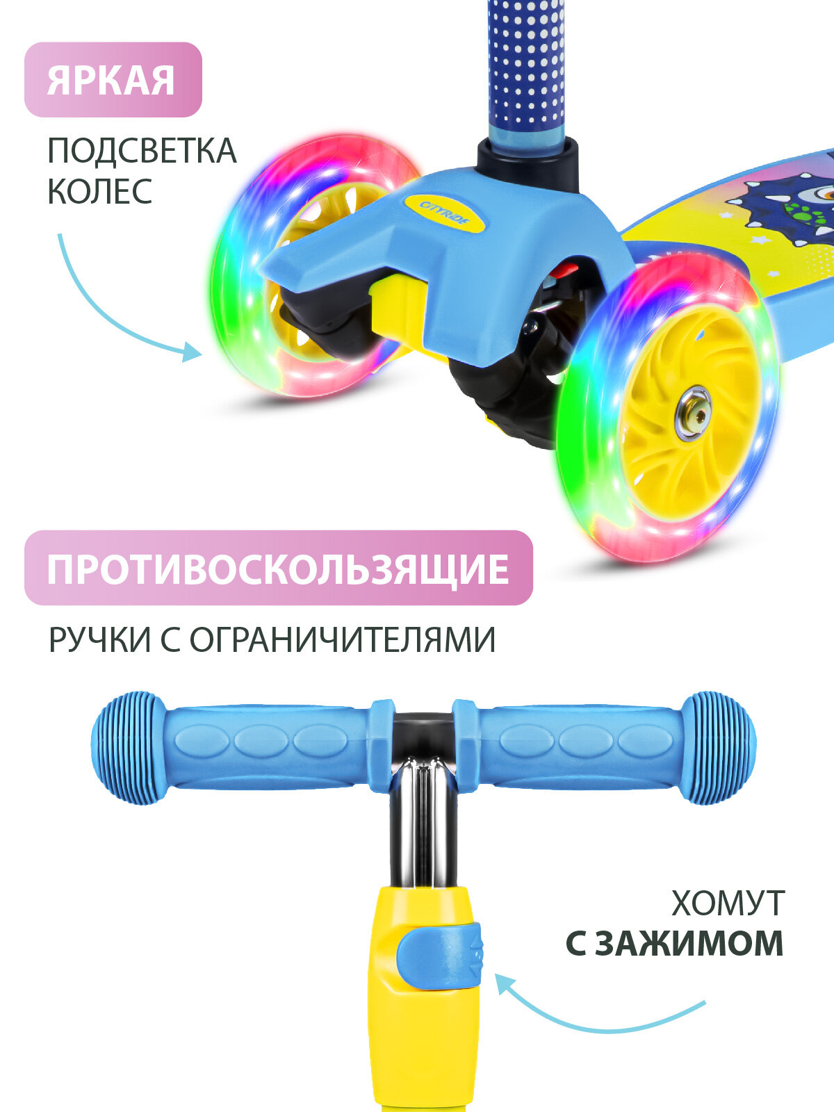 | Дополнительная информация | светодиоды на колесах, резиновые ручки на руле |