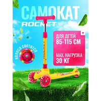 Купить Самокат детский трёхколёсный ROCKET R0188, цвет жёлто-розовый. Рекомендуемый рост: 85 – 115 см. с доставкой по всей России.