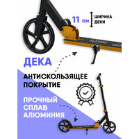 Самокат оборудован полиуретановыми колесами диаметром 200 мм, которые обеспечивают плавное и комфортное катание. Класс подшипника ABEC-9 гарантирует стабильность и точность управления.