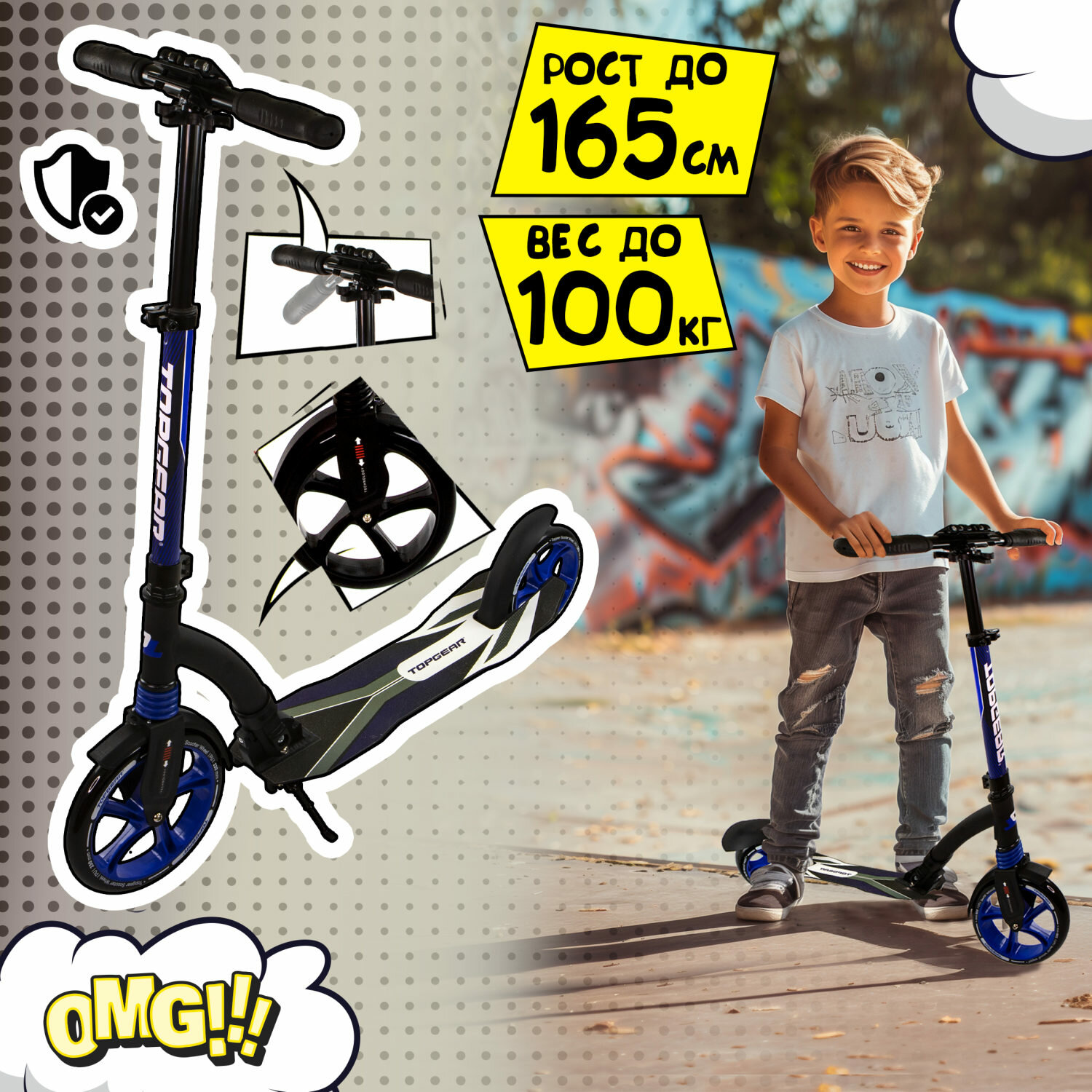 Самокат двухколесный детский, подростковый TOPGEAR с передним амортизатором, складными ручками и защитой руля: сравнение цен, характеристики, фото, актуальное наличие и цены.