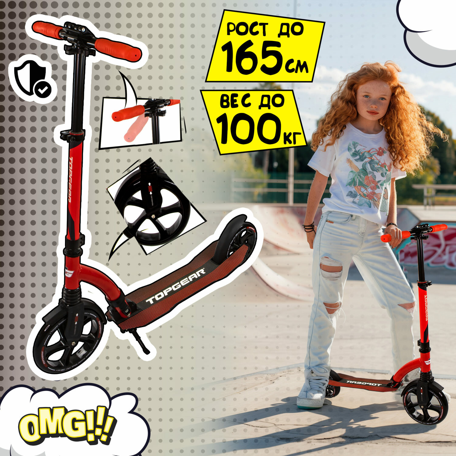 Купить Самокат двухколесный детский, подростковый TOPGEAR с передним амортизатором, складными ручками и защитой руля с доставкой по всей России.