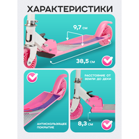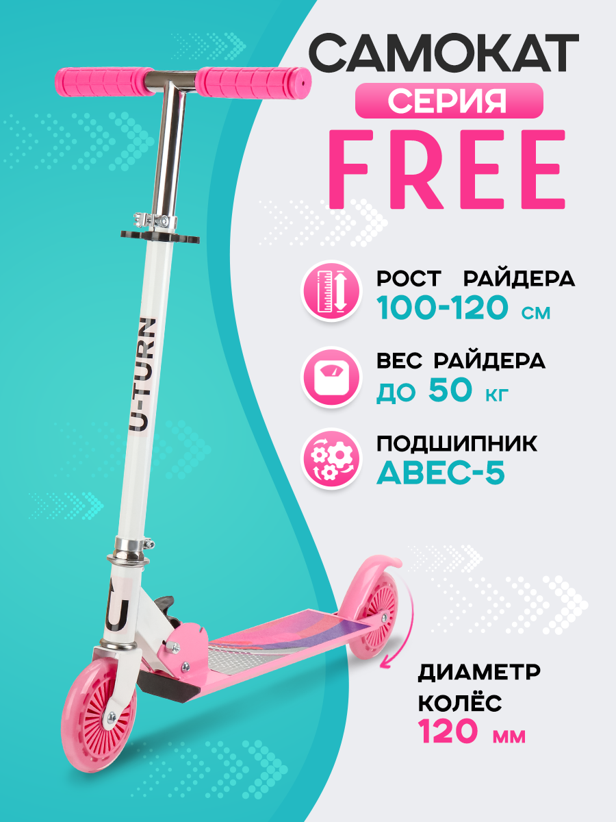 Самокат двухколесный FREE (колеса PU 120мм, 65*10*59-80см, до 50кг) бело-розовый: сравнение цен, характеристики, фото, актуальное наличие и цены.
