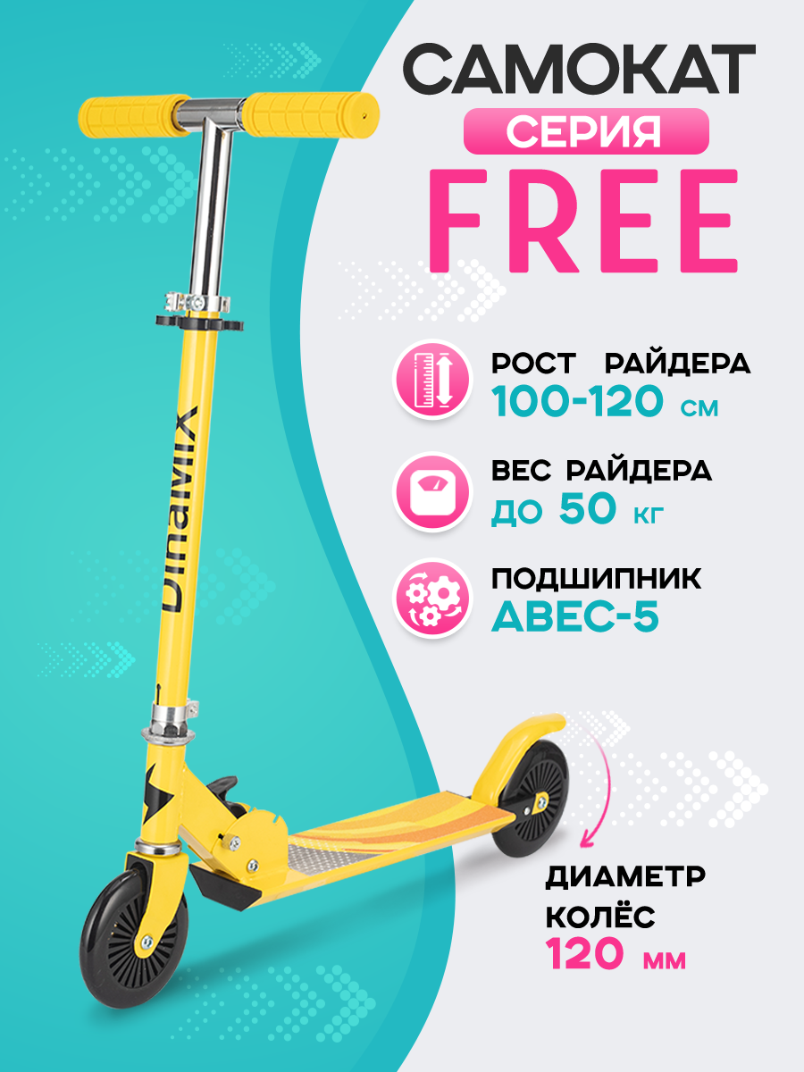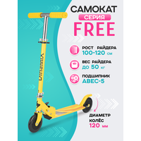 Самокат двухколесный FREE (колеса PU 120мм, 65*10*59-80см, до 50кг) желтый: сравнение цен, характеристики, фото, актуальное наличие и цены.