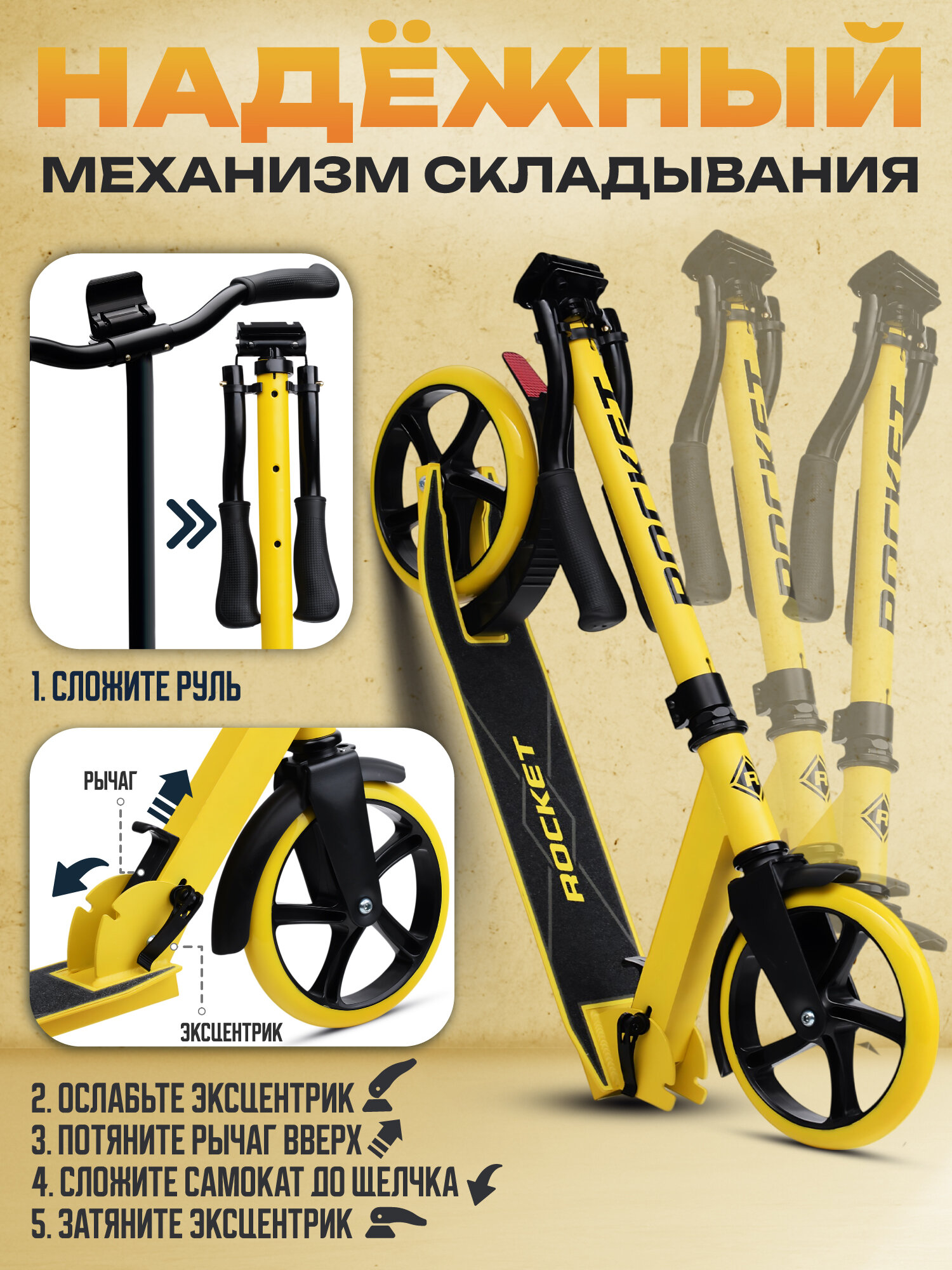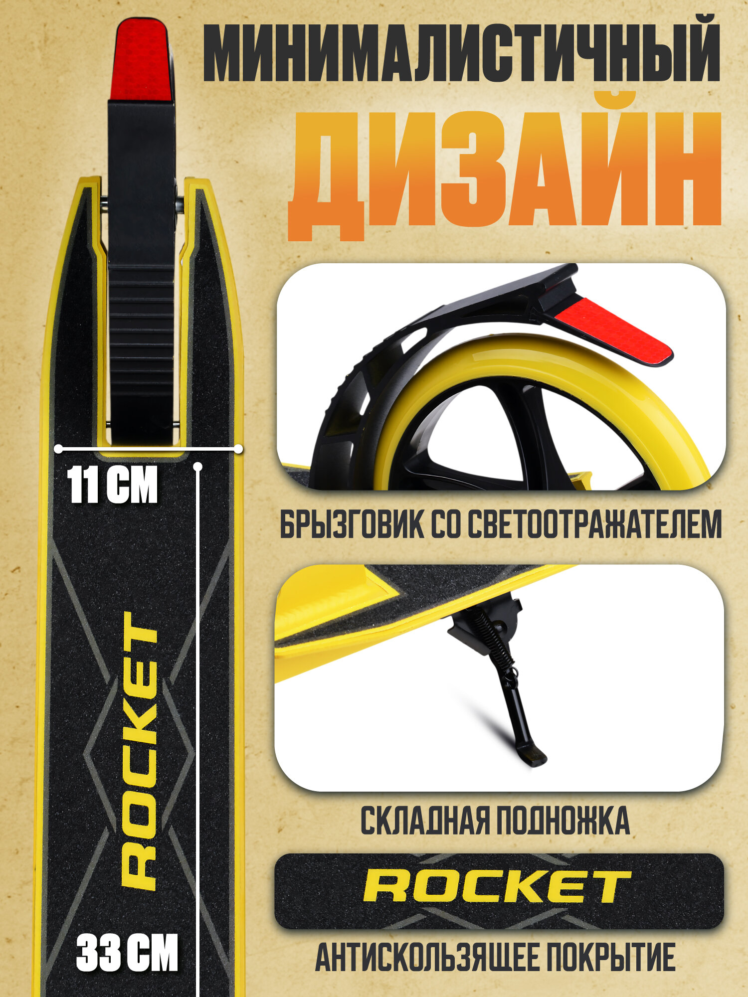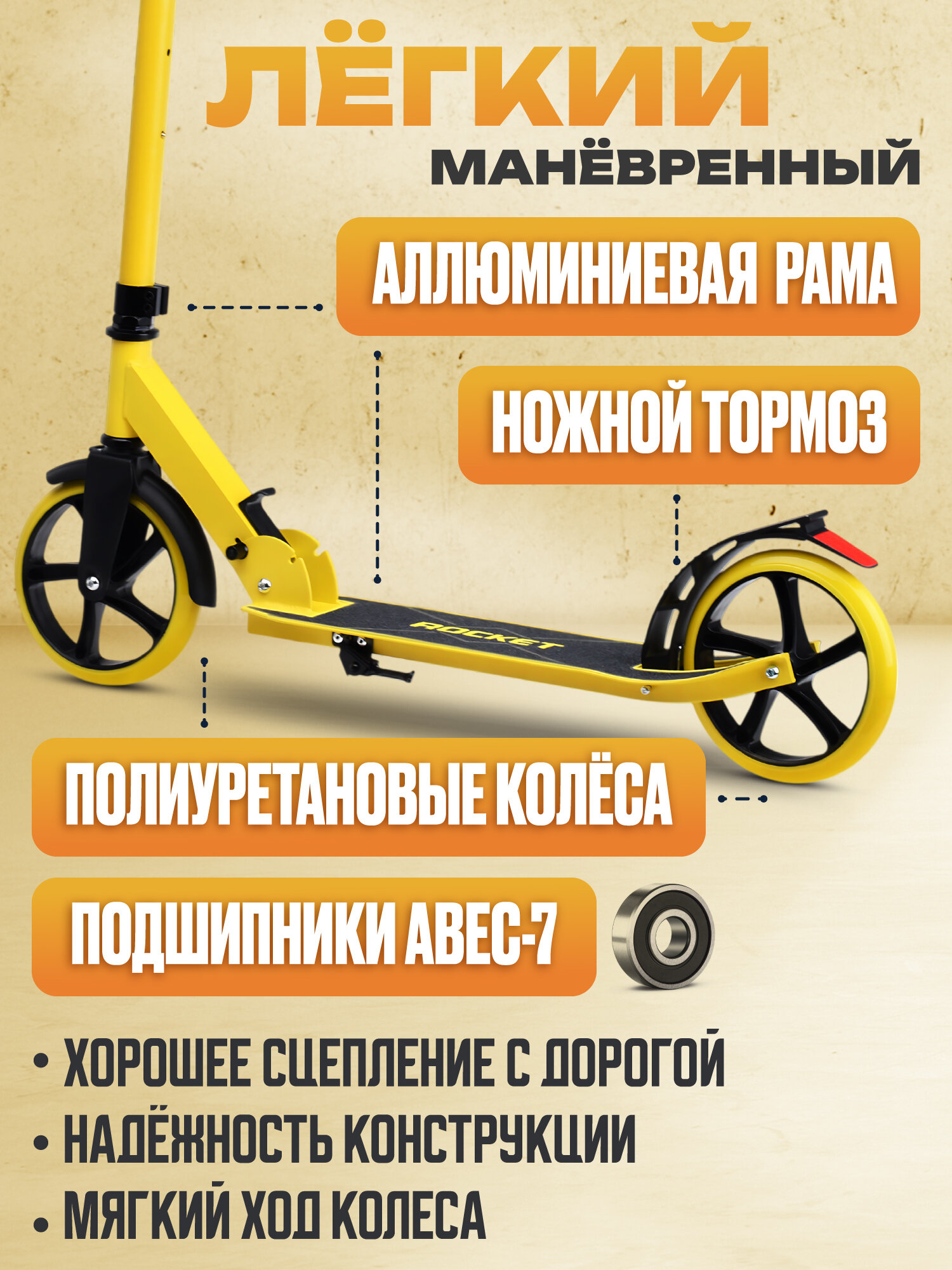 Самокат двухколесный городской ROCKET, алюминиевая рама, колеса PU 200 мм, ABEC 7, желтый: сравнение цен, характеристики, фото, актуальное наличие и цены.