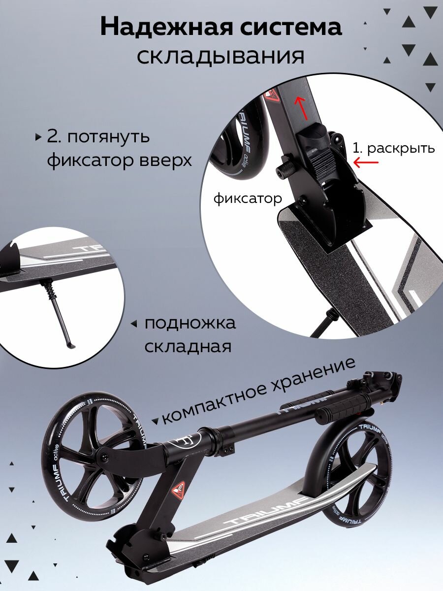Купить Самокат двухколесный Triumf Active, черный с доставкой по всей России. Самокат двухколесный Triumf Active, черный: сравнение цен, характеристики, фото, актуальное наличие и цены.