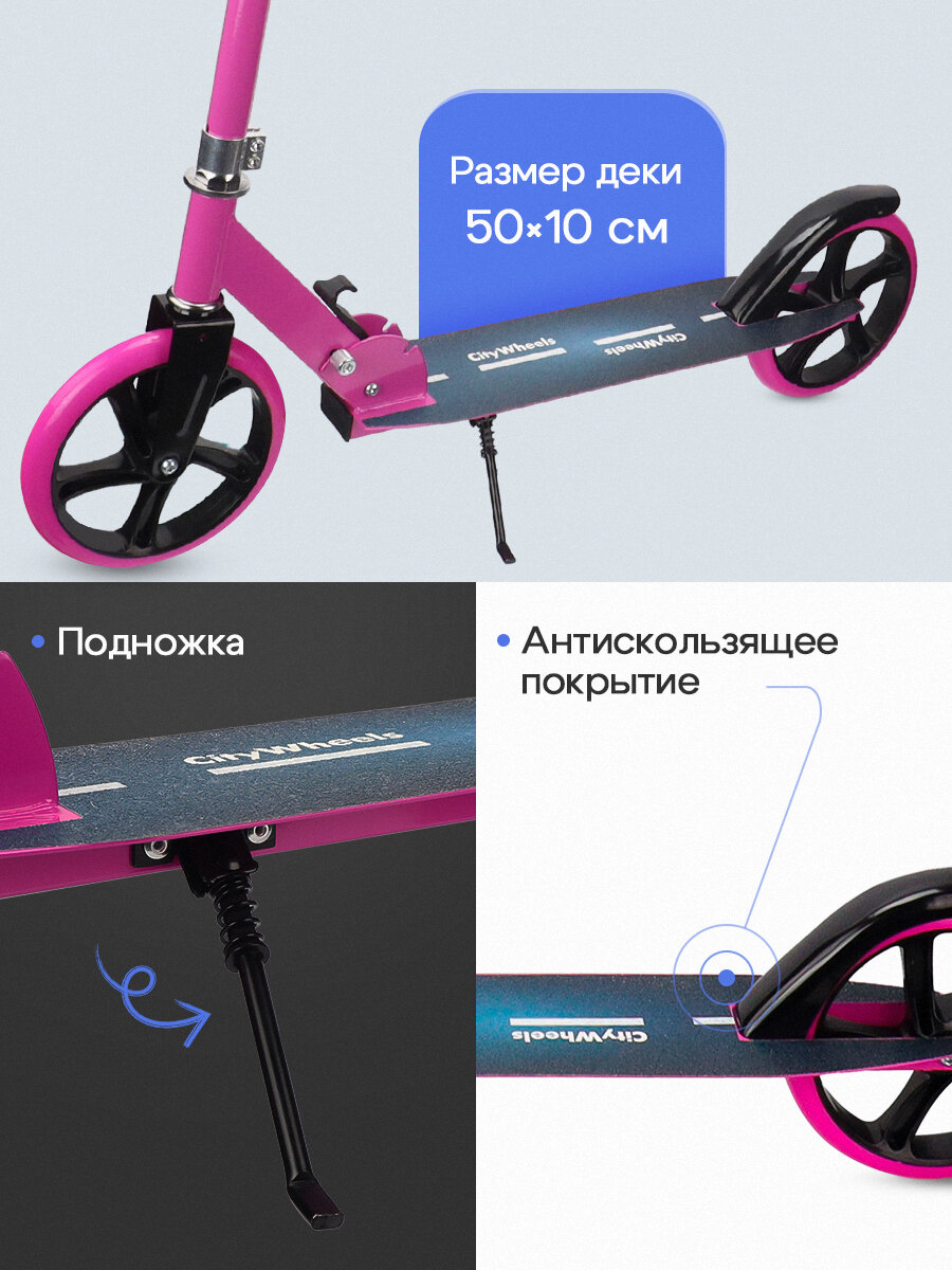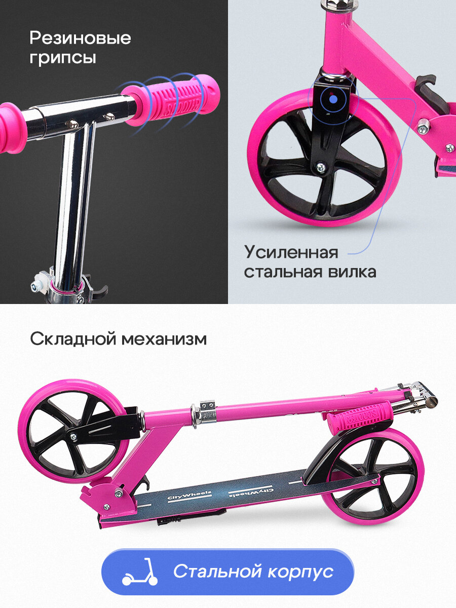 Самокат двухколесный серия «CITY WHEELS» складной механизм, колёса PU 200 мм, нагрузка до 100 кг, розовый: сравнение цен, характеристики, фото, актуальное наличие и цены.