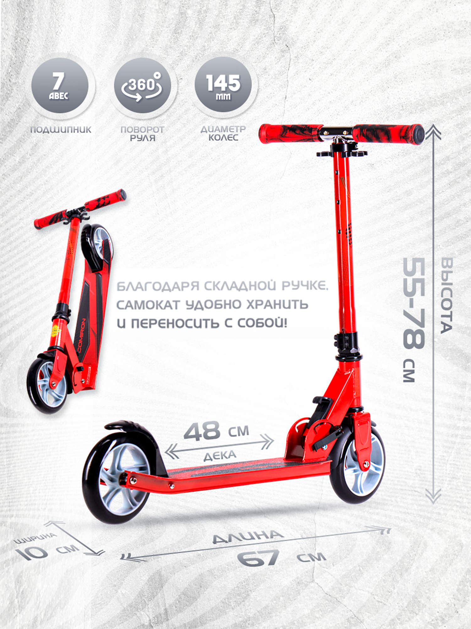 Самокат двухколесный складной городской COMIRON «Навстречу ветру» Ferrari, алюминиевая дека 48х10 см, большие полиуретановые колеса 14,5 см, регулируемый руль, красный / 1 шт.: сравнение цен, характеристики, фото, актуальное наличие и цены.