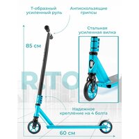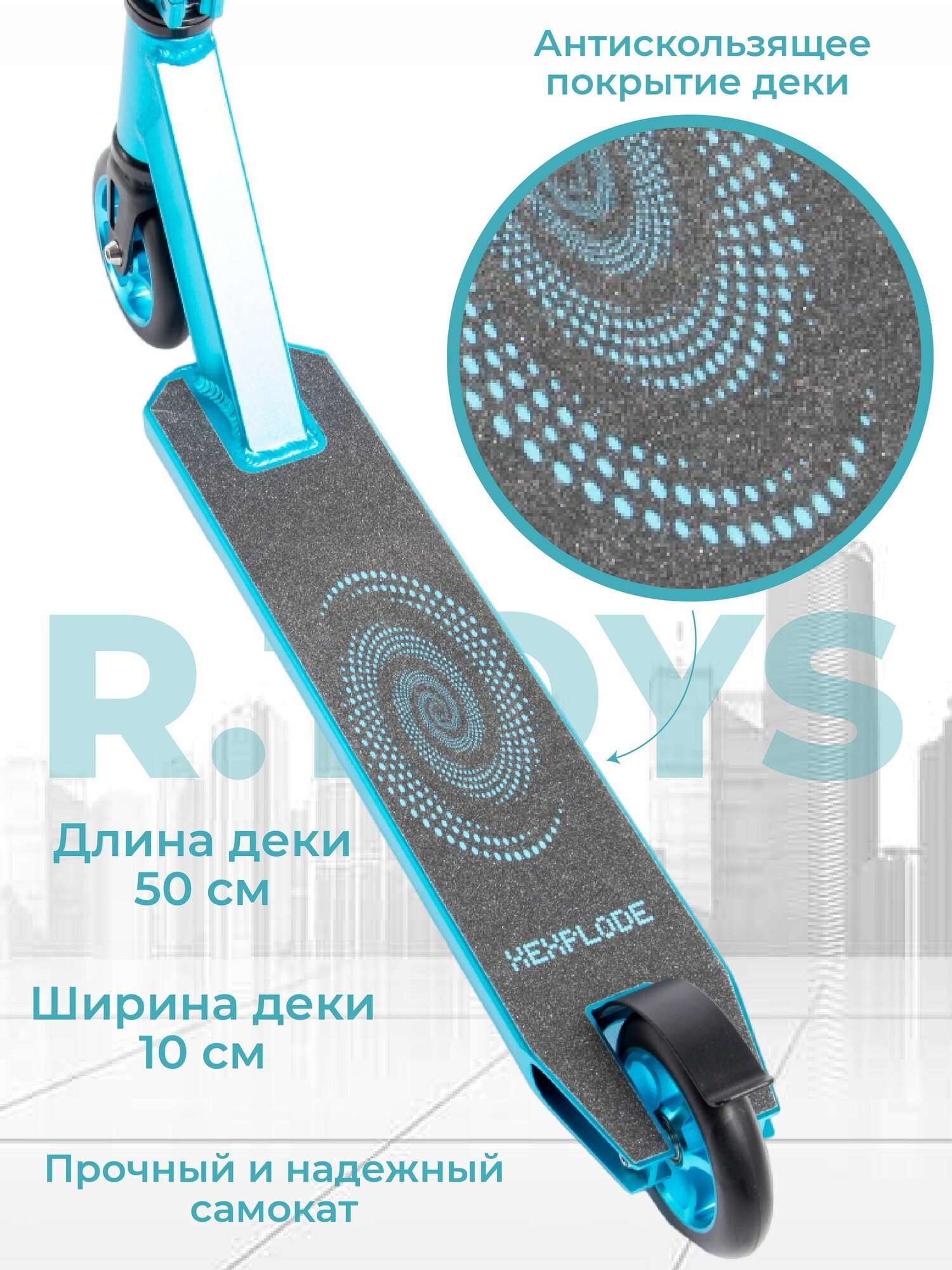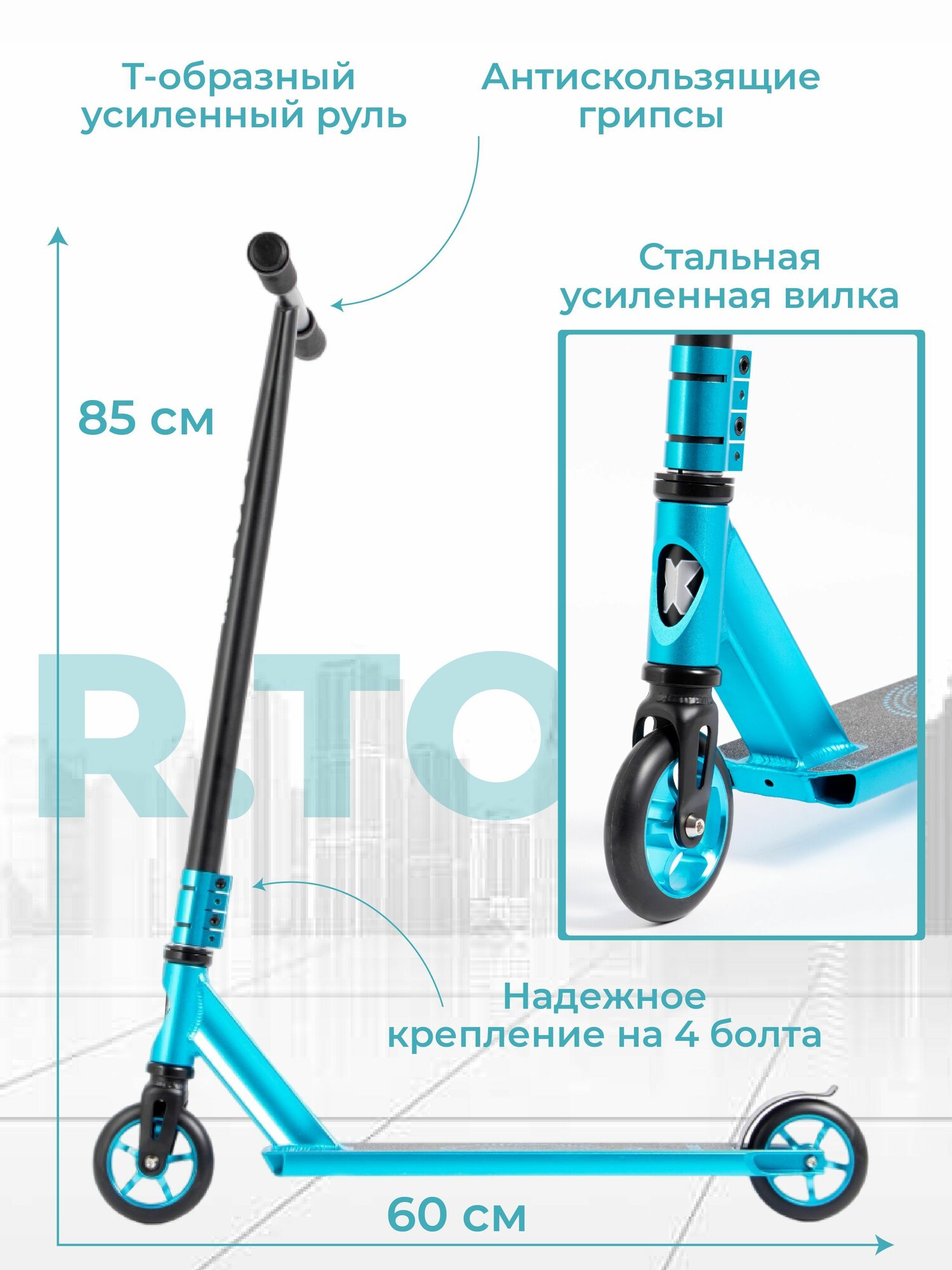 Трюковой двухколесный самокат , для детей и подростков, с рекомендуемым ростом 120-170 см и весом до 100 кг. Металлический тормоз. Грузоподъемность: до 100 кг. Самокат трюковой. Наш самокат трюковой подростковый можно использовать, как для трюков, так и для катания. Самокат детский трюковой и самокат детский трюковый- отличный подарок для мальчика, а также подарок для подростка. Шкурки у данной модели идут в двух вариантах. Трюковые самокаты для детей и подростков — это модные и популярные игрушки, увлекательные и при этом очень полезные для детского организма. Самокат трюковой двухколесный подходит как для младших детей, так и для тинейджеров. Трюковой самокат для детей может использоваться как для занятий спортом на рампах и в парках, так и для обычных прогулок. Детский самокат двухколесный легко управляется и не требует особых навыков вождения, что особенно удобно для детей. Самокаты имеют прочную раму и мягкие колеса, что позволяет кататься по любым поверхностям. Трюковой самокат для подростков также является отличным выбором для тех, кто любит экстрим и активный отдых. Этот вид самоката обеспечивает отличную маневренность и возможность выполнять самые сложные трюки.