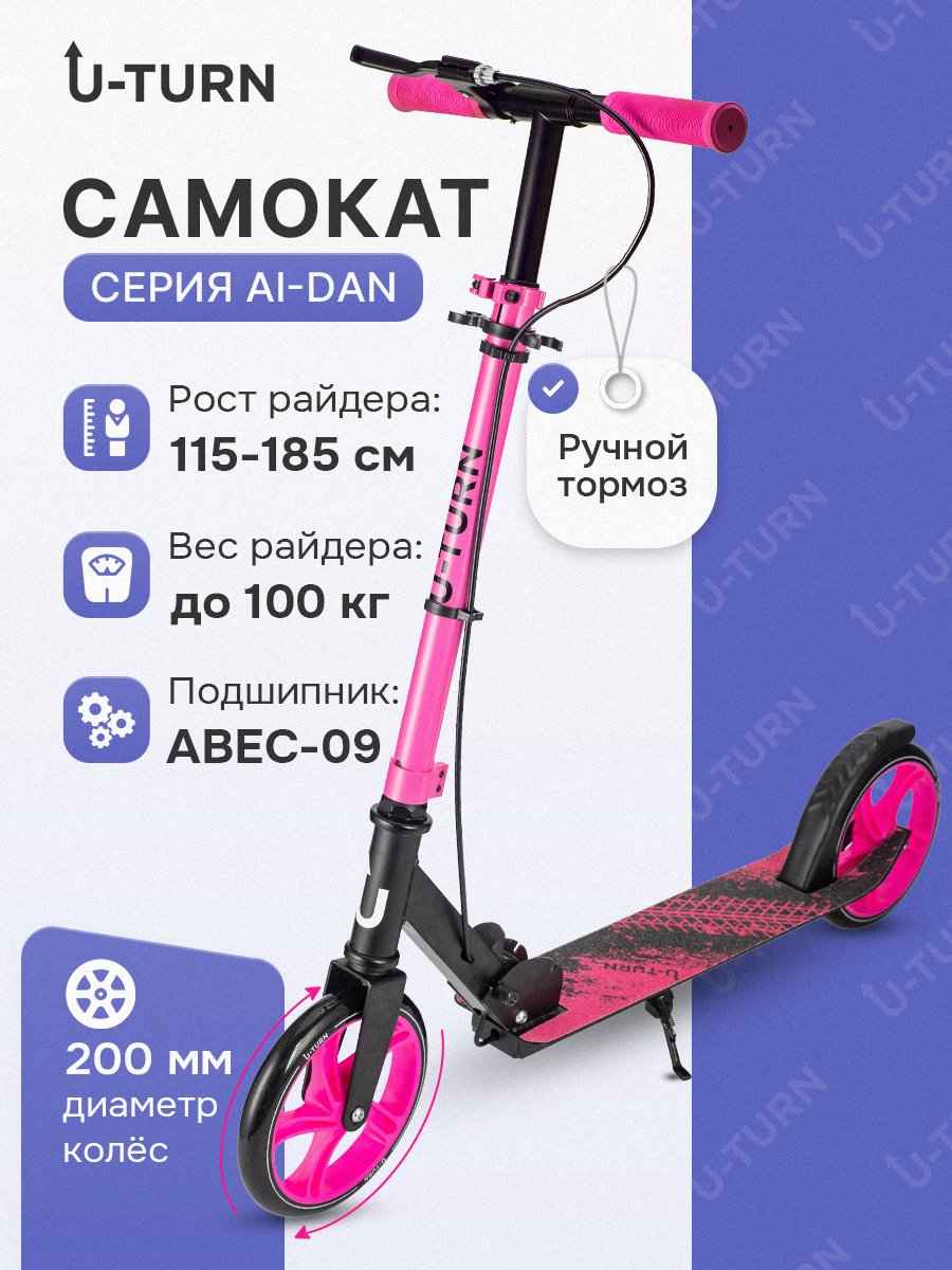 Самокат двухколёсный серия «AI-DAN» колеса PU 200 мм, регулировка ручки от 88-102 см, нагрузка до 100 кг, розовый: сравнение цен, характеристики, фото, актуальное наличие и цены.