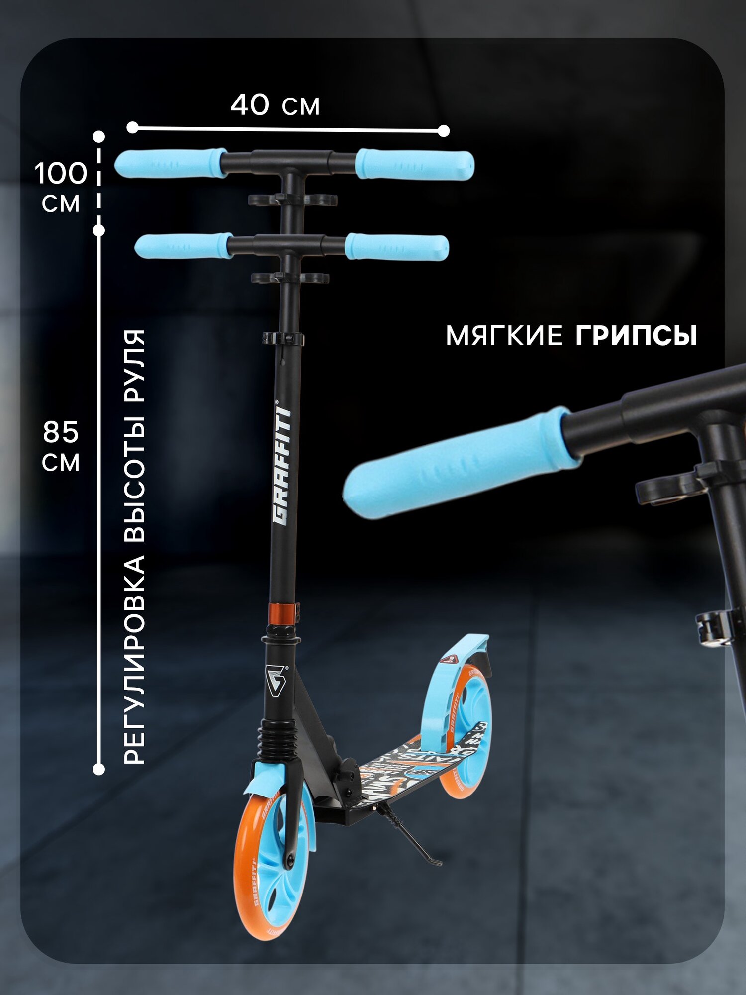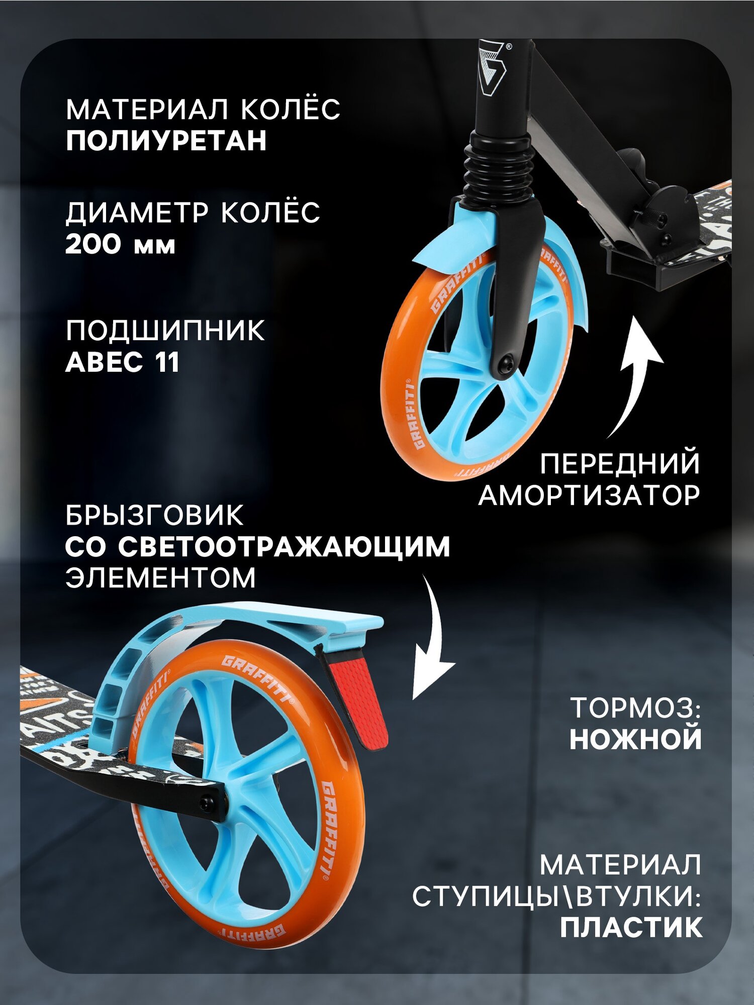 Самокат городской GRAFFITI Lux 200, колёса PU 200 мм, амортизатор передний, ABEC 11 Carbon, цвет чёрный: сравнение цен, характеристики, фото, актуальное наличие и цены.