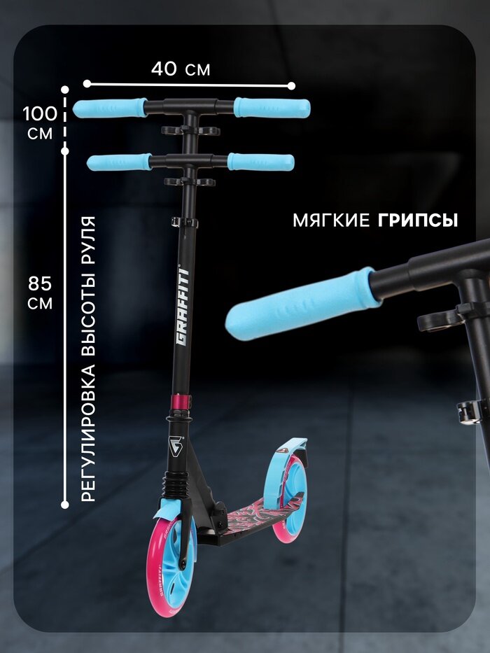 Самокат городской GRAFFITI Lux 200, складной, колёса PU 200 мм, амортизатор передний, ABEC 11 Carbon, цвет чёрный: сравнение цен, характеристики, фото, актуальное наличие и цены.