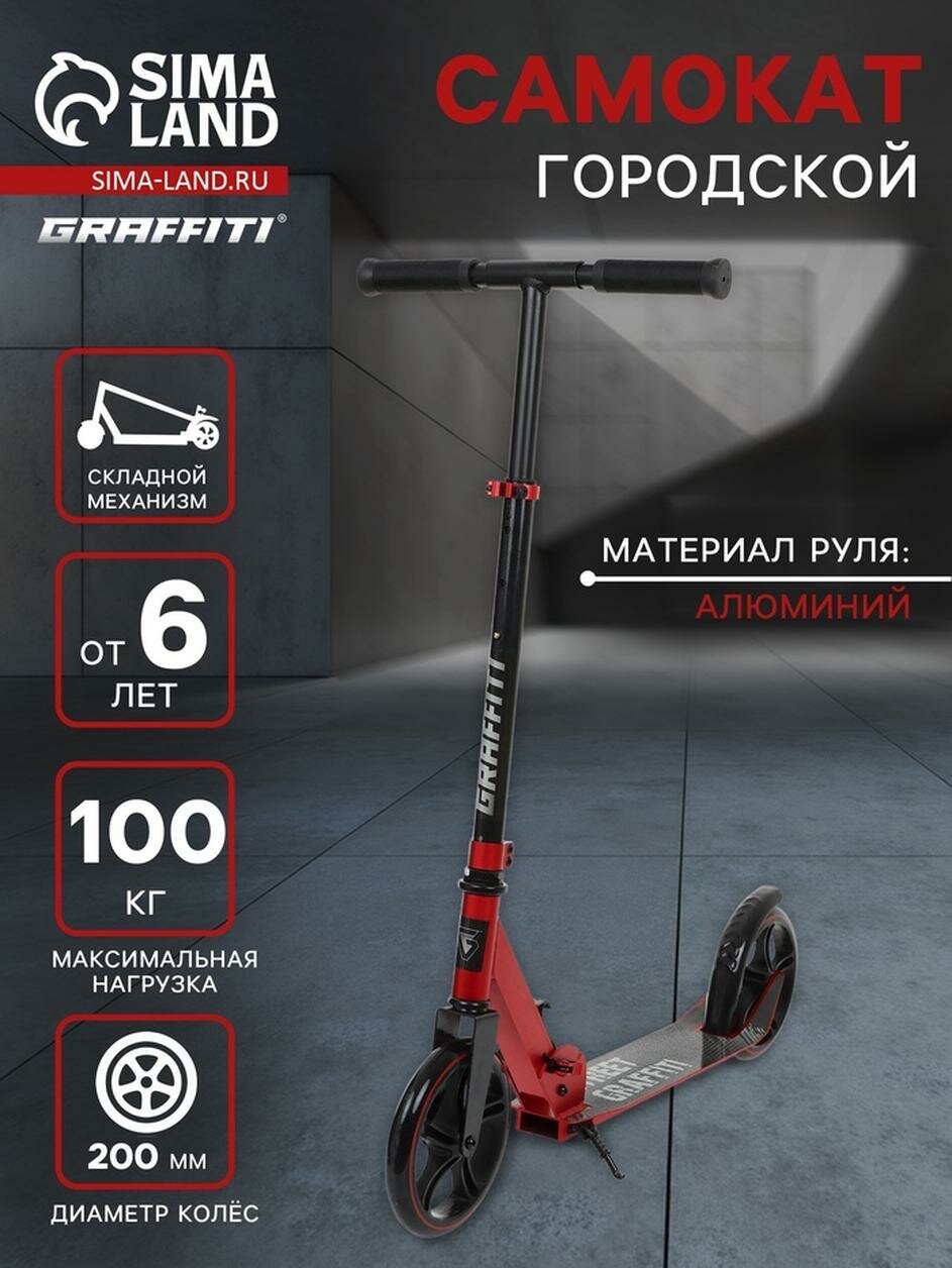 Самокат городской GRAFFITI, складной, колёса PU 200, 86A, ABEC 9, подножка, цвет красный: сравнение цен, характеристики, фото, актуальное наличие и цены.