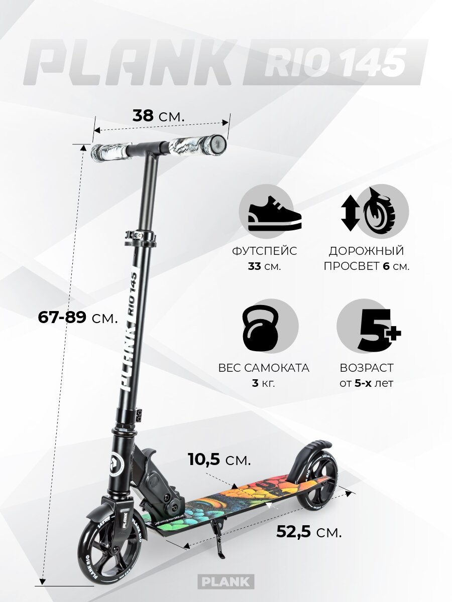 Самокат Plank RIO 145 - это стильный и надежный транспорт для активного образа жизни.