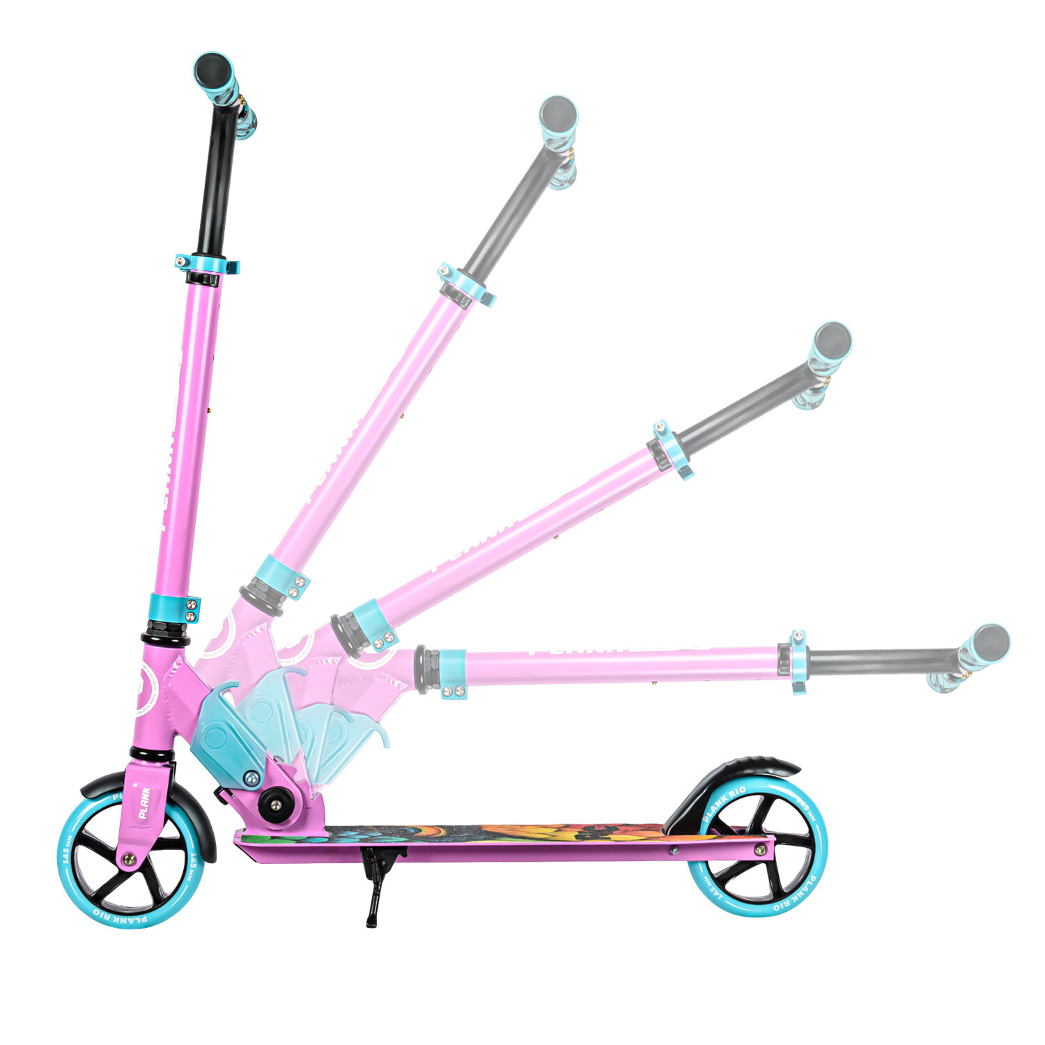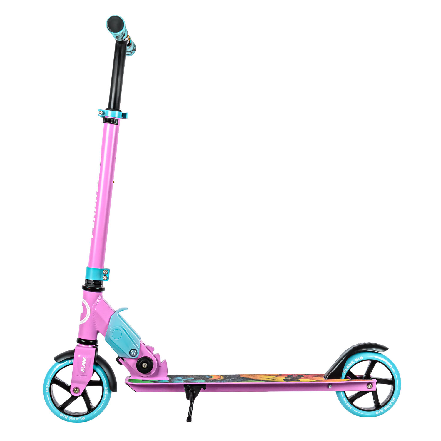 Городской складной двухколесный самокат PLANK RIO 145 с ярким дизайном, предназначен для подростков и детей старше 5-ти лет. Оснащен легкой системой складывания, справится даже ребенок, полиуретановыми колесами 145мм и подшипниками ABEC7, что обеспечивает хорошую управляемость, скорость и отличный накат самоката. Складной механизм позволяет легко хранить и перевозить самокат. Самокат оборудован подножкой для установки на стоянку в вертикальном положении. Размер деки: 52,5х10,5 см, дорожный просвет 6 см, футспейс 33 см. Поднятие руля от 67 см до 89 см. Отличное средство передвижения и развлечения. Максимальная нагрузка 80 кг.