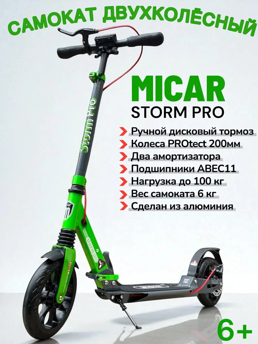 Купить Самокат городской Storm Pro с ручным дисковым тормозом и двумя амортизатороми с доставкой по всей России.