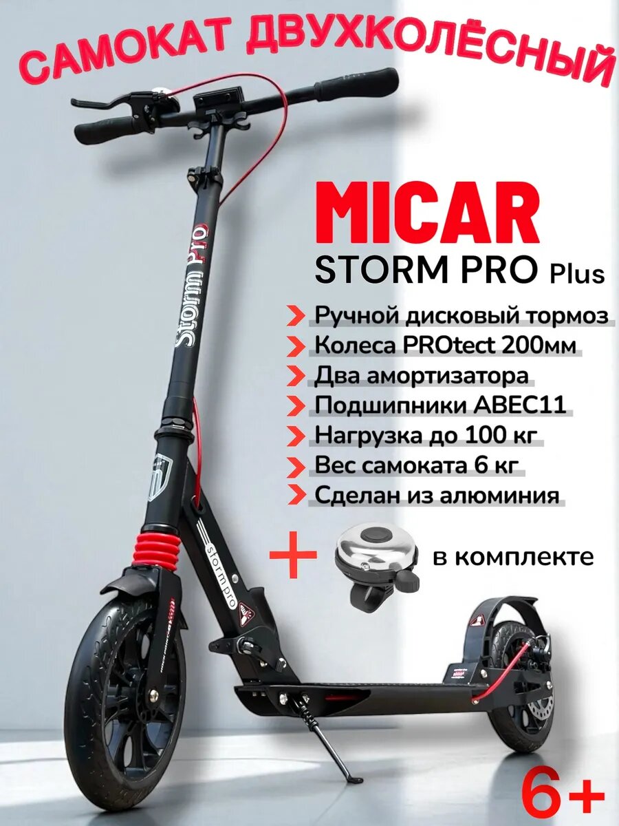 Купить Самокат городской Storm Pro с ручным дисковым тормозом и двумя амортизатороми с доставкой по всей России.