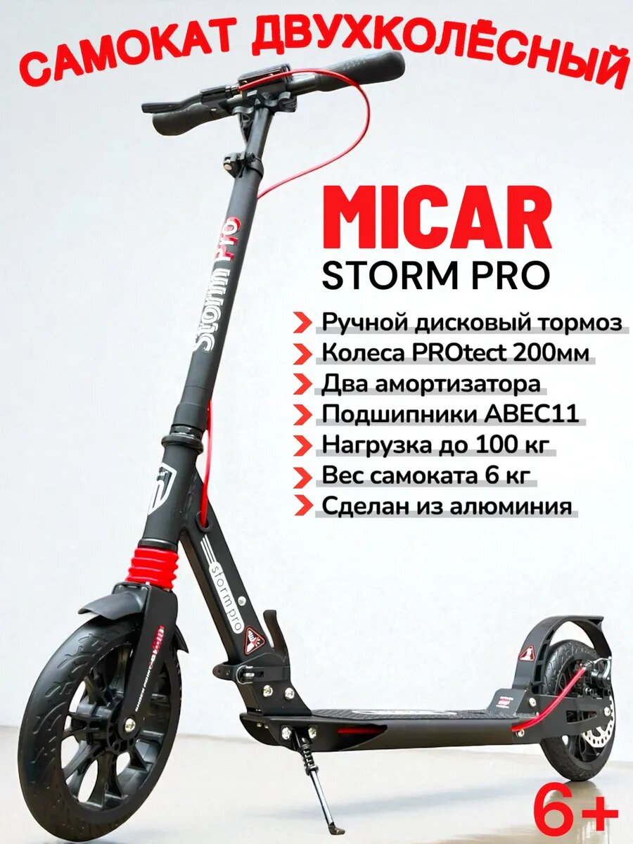 Купить Самокат городской Storm Pro с ручным дисковым тормозом и двумя амортизатороми с доставкой по всей России.