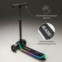 Светящийся трехколесный самокат AmaroBaby Blaze превратит обычную детскую прогулку в настоящий спектр позитивных эмоций! Детский трёхколёсный самокат подходит в качестве первого самоката для ребёнка. Кикборд изготовлен из качественных материалов и не имеет запаха. Выдерживает максимальную нагрузку 50 кг. Дека и рулевая стойка имеют встроенную подсветку из 20 режимов! Питание от трех батареек АА 1,5V (в комплект не входят). Переключаются режимы с помощью кнопки управления, расположенной на руле. Рулевая стойка наклоняется в нужную ребёнку сторону, что даёт возможность уверенно держаться в поворотах, сохранять равновесие. Высота руля регулируется по высоте от 64 до 80 см. Бесшумные полиуретановые колеса светятся во время езды. Диаметр передних колёс составляет 12 см, заднего 8 см. Торможение осуществляется с помощью ножного тормоза, который расположен на заднем колесе. Ребёнку будет удобно стоять на самокате благодаря комфортной длине деки 41 см, и ширине 13,5 см. На деке самоката предусмотрен специальный рельеф, чтобы ножка ребёнка не скользила. Подшипники ABEC-7 обеспечивает плавный ход самокату. Самокат отлично подойдёт в качестве подарка на День Рождения, Новый год, 8 марта. Порадуйте своего ребёнка стильным светящимся самокатом!