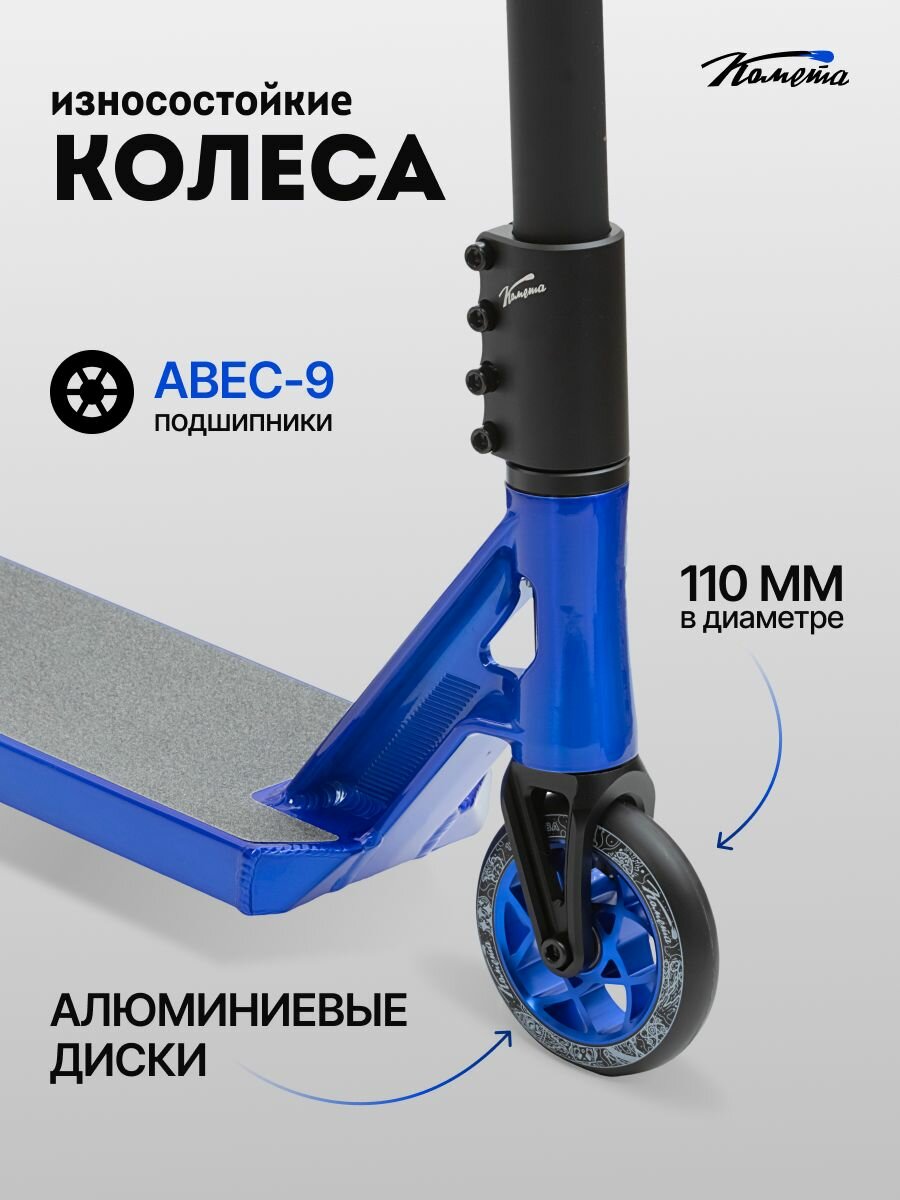 Купить Трюковой двухколесный стрит парк самокат Комета Астра 545 (черный, синий) с доставкой по всей России.