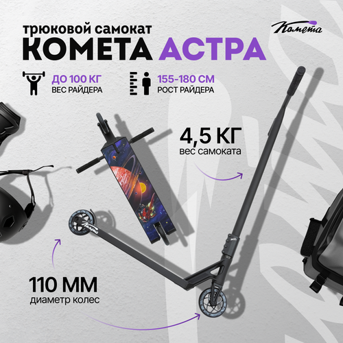 Купить Трюковой двухколесный стрит парк самокат Комета Астра 545 (черный) с доставкой по всей России.