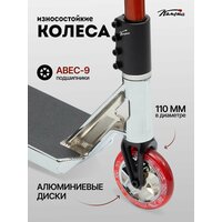 Максимальная нагрузка на самокат составляет 100 кг, что позволяет использовать его как для выполнения трюков, так и для повседневного катания. Вес самоката составляет всего 4,755 кг, что делает его легким и удобным для переноски.