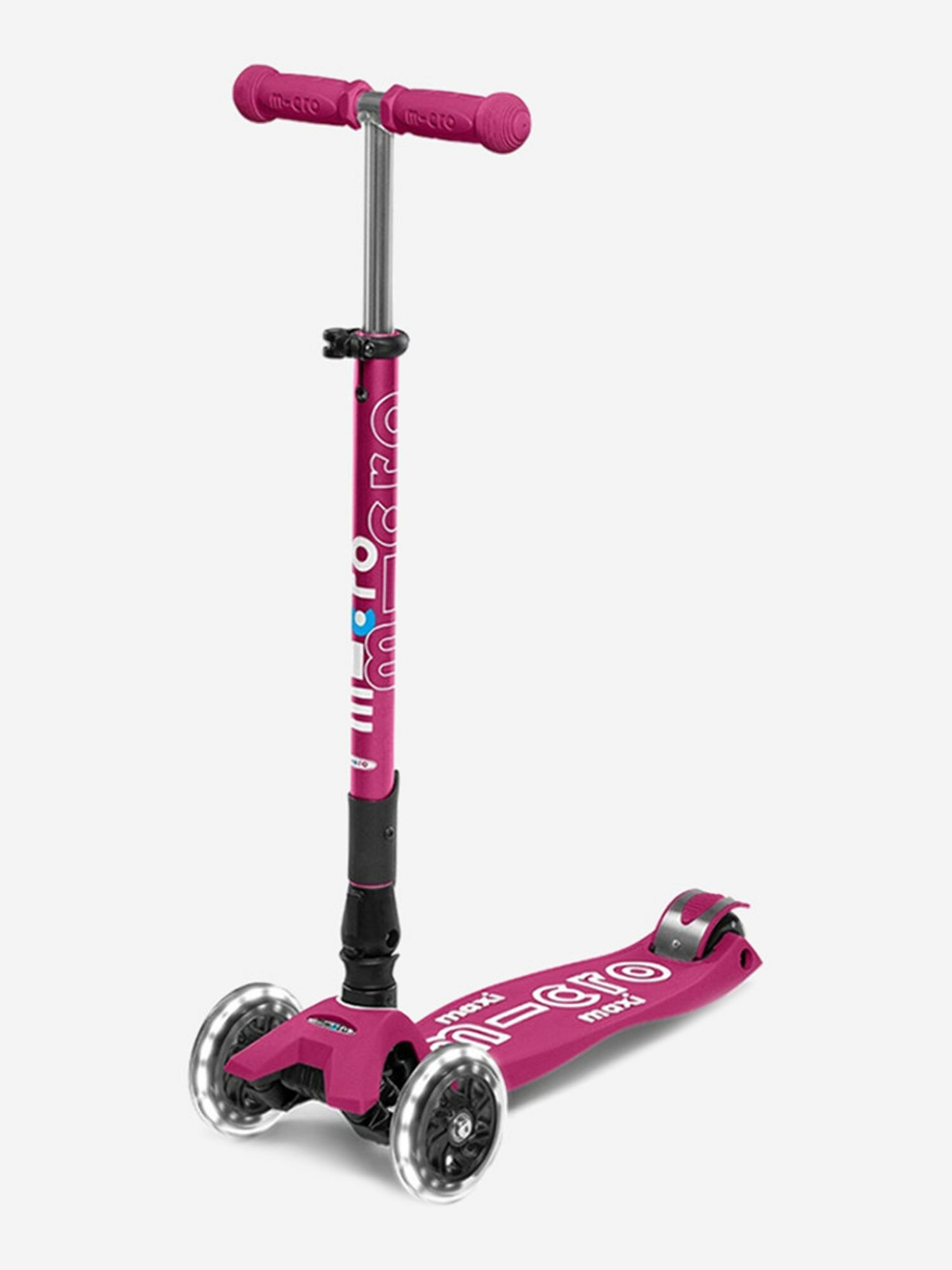 Самокат Micro «Maxi Deluxe LED», детский, 3-х колесный, регулировка руля, складной, розовый: сравнение цен, характеристики, фото, актуальное наличие и цены.