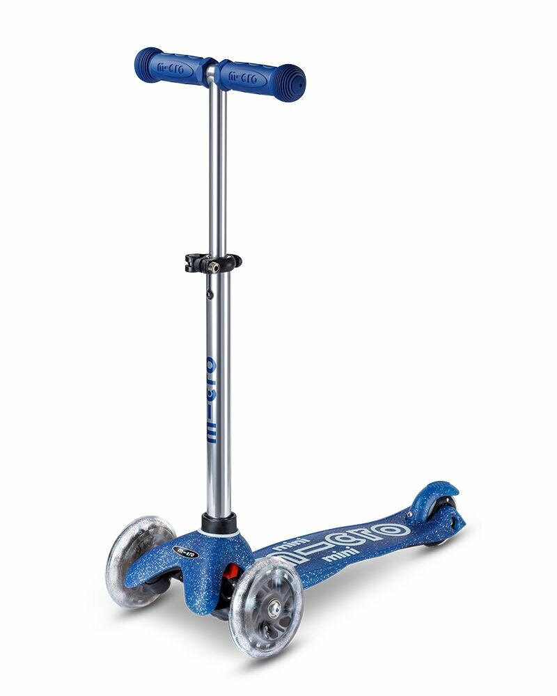 Купить Самокат Mini Micro Deluxe блестящий LED галактика синий MMD219 (блестящая дека, колеса с блестками) с доставкой по всей России.