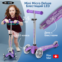 Купить Самокат Mini Micro Deluxe блестящий LED сиреневый MMD207 (блестящая дека, колеса с блестками) с доставкой по всей России.