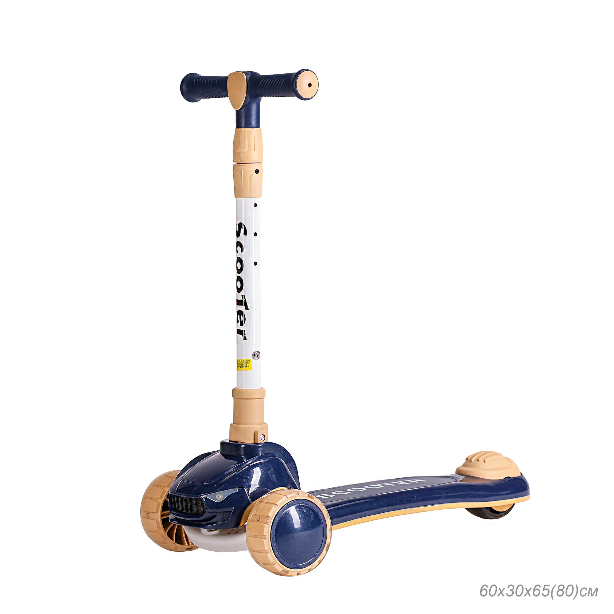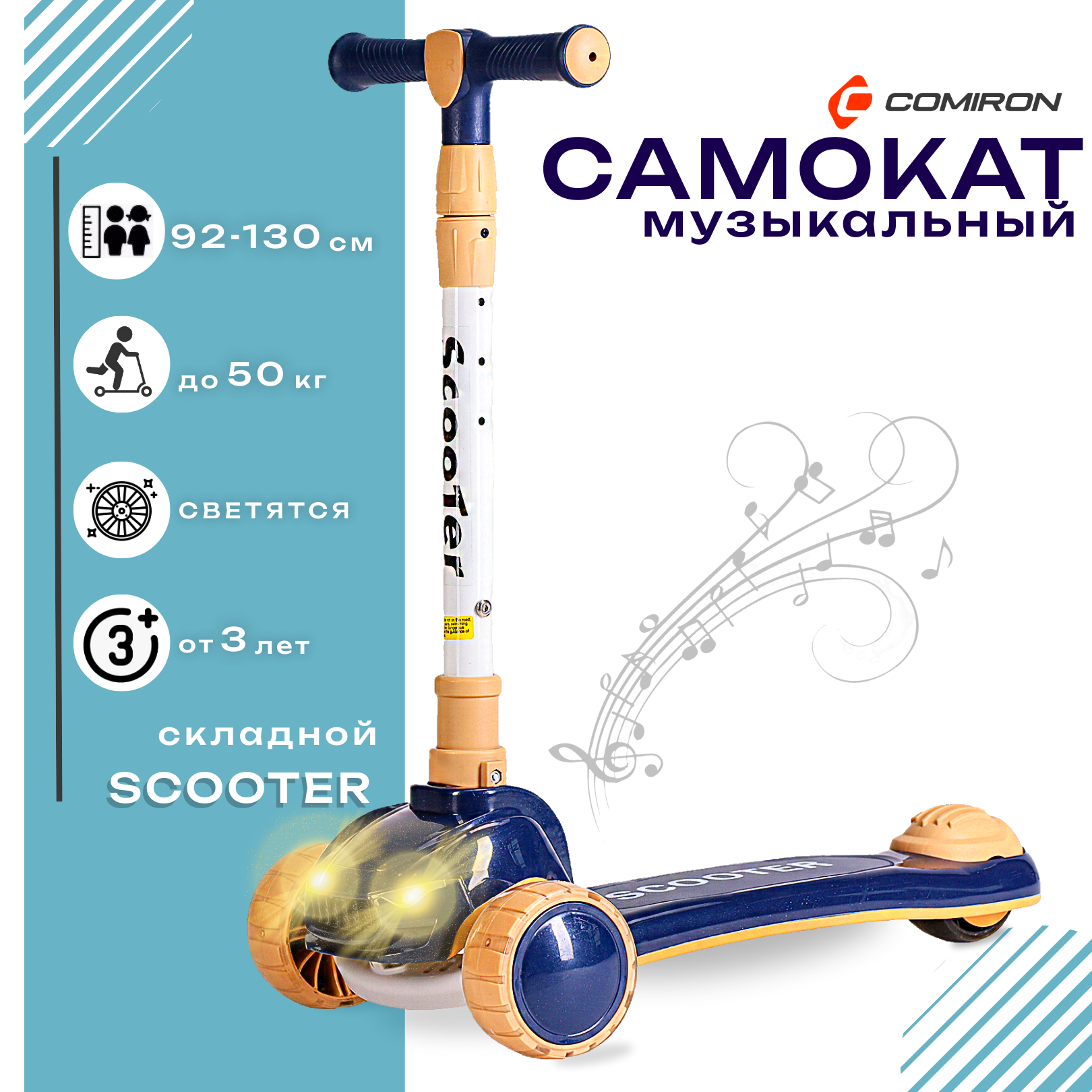 Самокат с фарами и музыкой трехколесный SCOOTER, складная ручка, светящиеся PU колеса 110 и 80 мм, до 50 кг, ABEC 7, синий / 1 шт.: сравнение цен, характеристики, фото, актуальное наличие и цены.