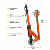 Самокат SHULZ 120 LED, складной, светящиеся колёса — Оранжевый