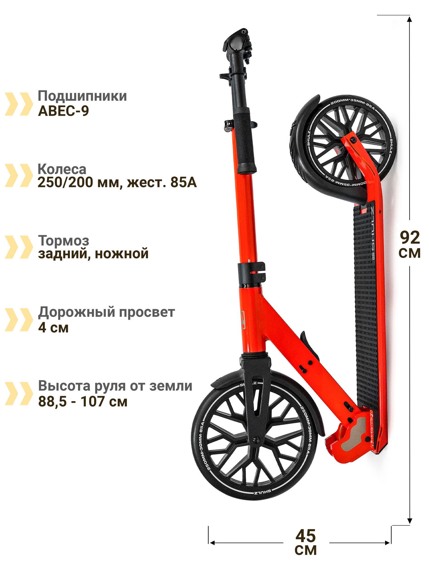 Самокат SHULZ 250 Speed, складной, нагрузка до 130 кг. — Оранжевый: сравнение цен, характеристики, фото, актуальное наличие и цены.