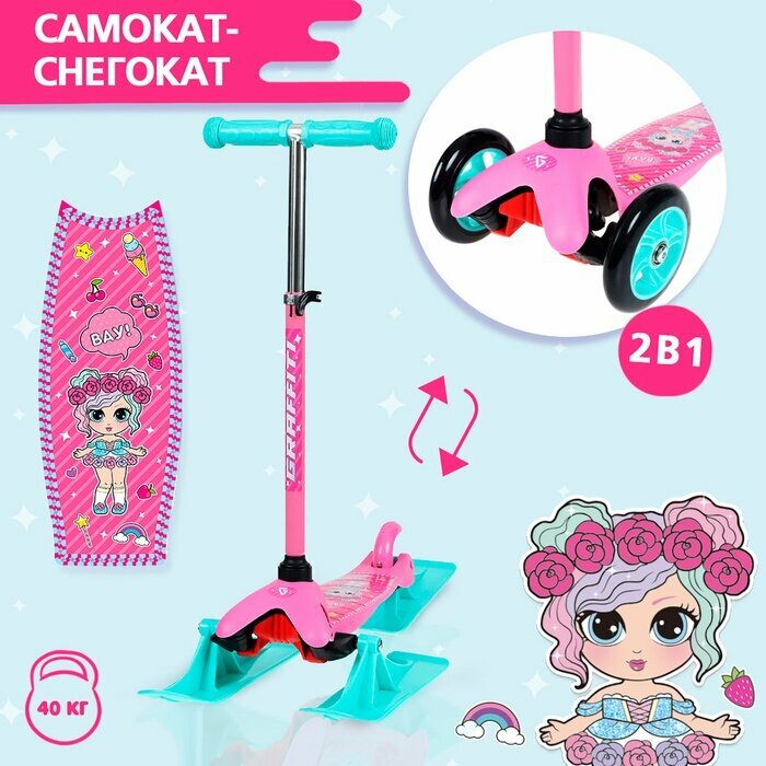 Самокат-снегокат 2 в 1 GRAFFITI «Девочка»