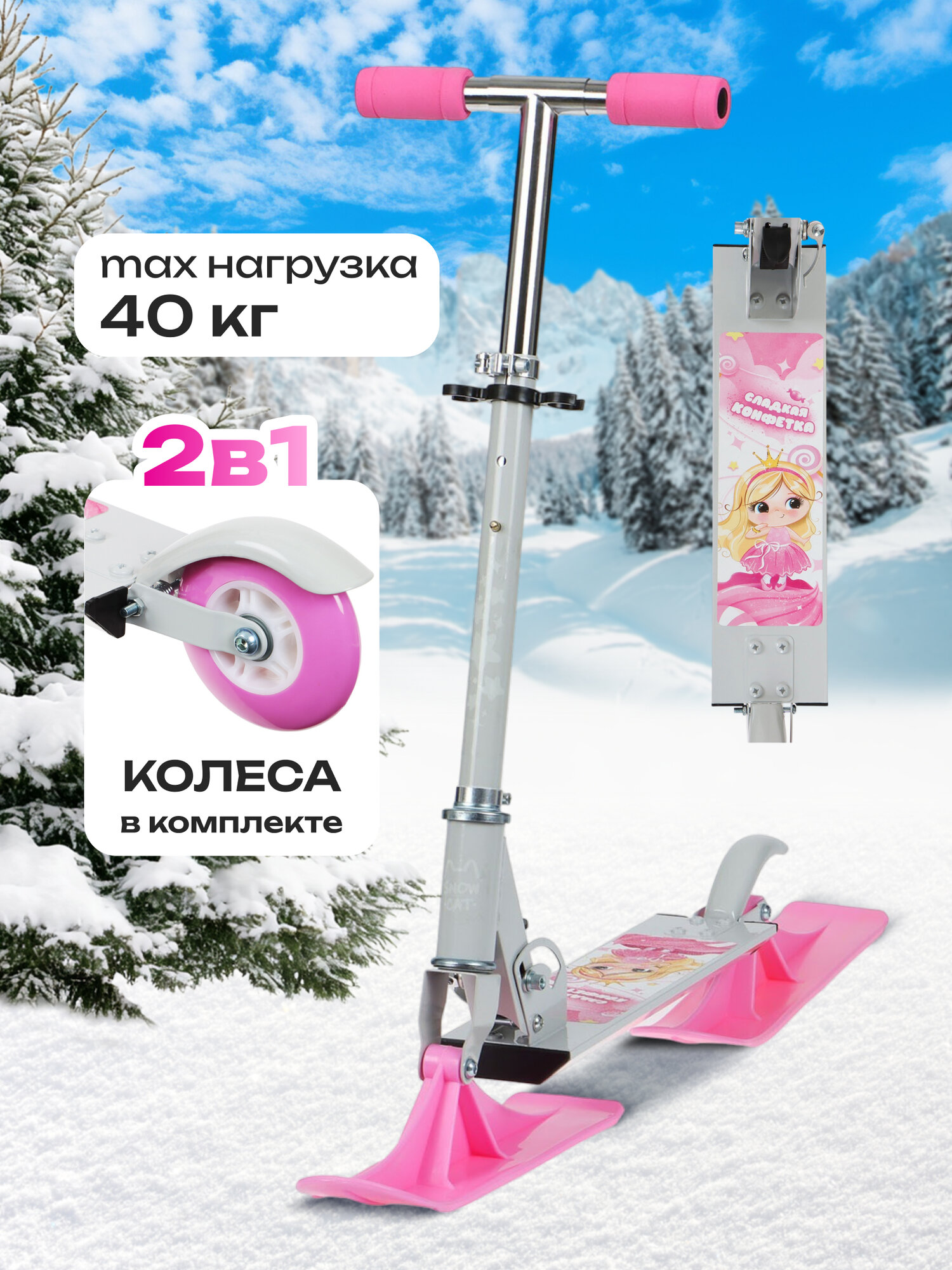 Самокат-снегокат «Snow Cat», 2в1, для детей, металл, белый, нагрузка до 40кг: сравнение цен, характеристики, фото, актуальное наличие и цены.