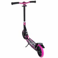 Дека длиной 55 см и шириной 12 см имеет футспейс 31 см, достаточный для размещения обеих ступней ребенка. Шкурка на деке, украшенная оригинальным рисунком, предотвратит соскальзывание. Торможение осуществляется алюминиевым тормозом-крылом, на котором дополнительно установлен пластиковый брызговик. Складывающаяся подножка позволит комфортно припарковать самокат на время отдыха.