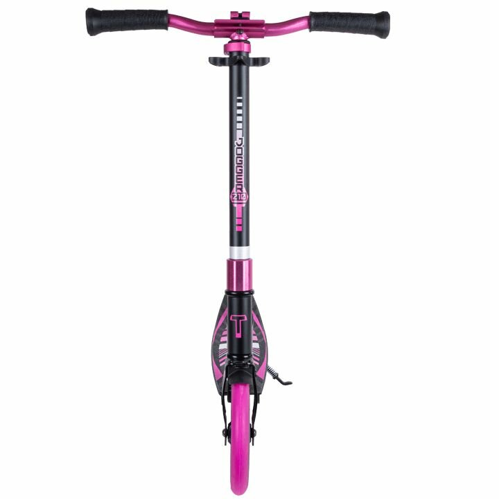 Достаточно широкий изогнутый руль (birdtype) - 48,5 см, обеспечивает комфортное положение рук во время катания. Как и в других самокатах этой серии, модель получила новые удобные резиновые грипсы, в виде "намотки" с широкими барендами. Специальный зажим исключает люфт ручек и, соответственно, посторонних звуков при езде. В сложенном состоянии для ручек самоката предусмотрены специальные зажимы. Руль имеет три фиксированных положения по высоте - 92-97-102 см, но за счет зажима может достаточно надежно фиксироваться и в более низких точках - до 78 см. Специальная светоотражающая полоса на руле делает катающегося более заметным для водителей в условиях плохой видимости. Кроме того на нем предусмотрена возможность крепления ремешка для переноски.