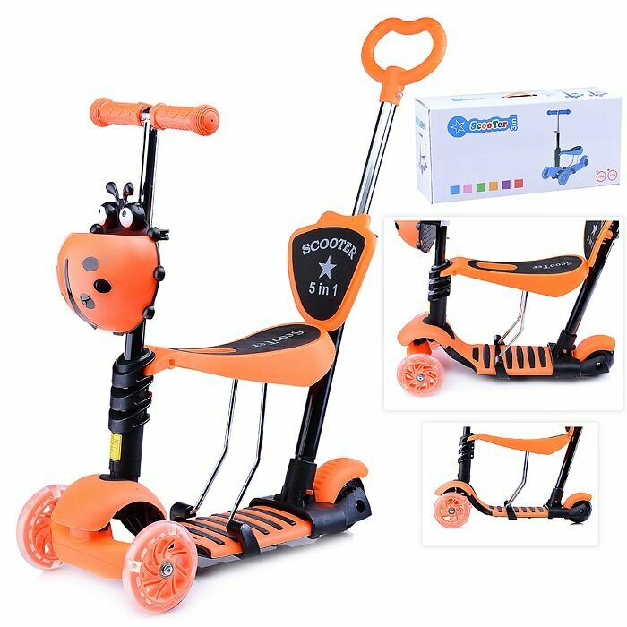 Самокат-трансформер 3 -х колесный детский, городской, со съемным сиденьем и ручкой. Оранжевый: сравнение цен, характеристики, фото, актуальное наличие и цены.