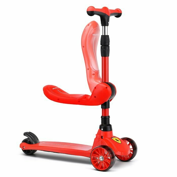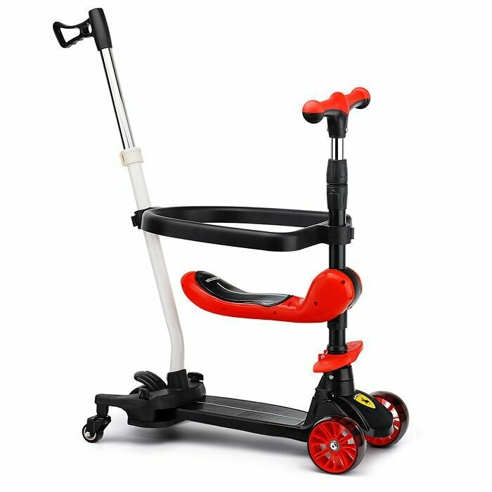 Самокат- трансформер 3-х колесный, с сиденьем, ограничителем, родительской ручкой, колеса PU, в коробке. Красный с черным.: сравнение цен, характеристики, фото, актуальное наличие и цены.