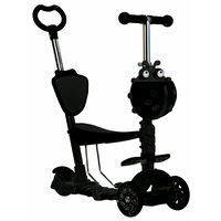 Самокат трехколесный 5 в 1 для детей с родительской ручкой, 1-5 лет, светящиеся колеса, черный