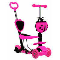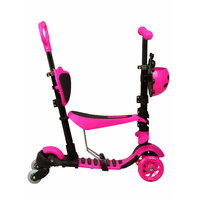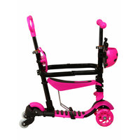 Самокат трехколесный 5 в 1 для детей с родительской ручкой, 1-5 лет, светящиеся колеса, розовый