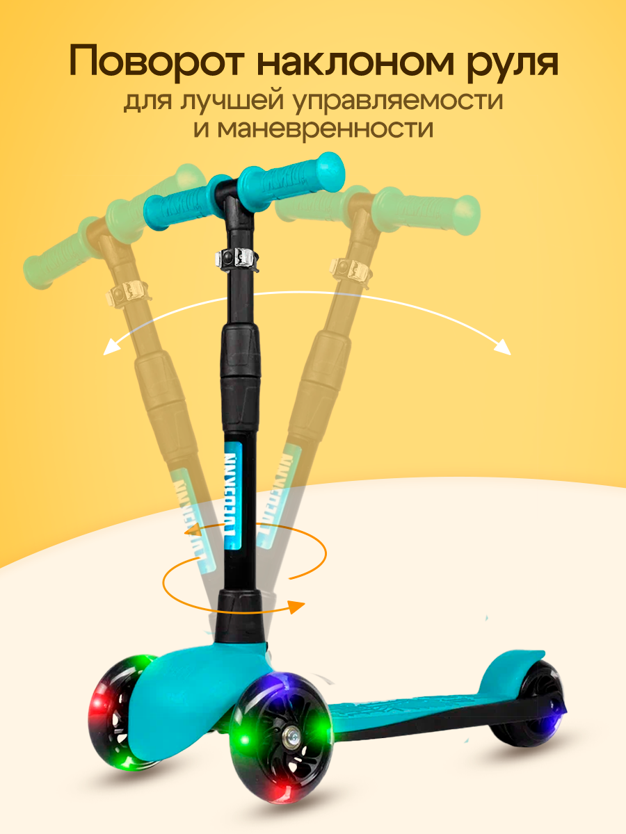 Самокат трехколесный детский Босс Стайл с фонариком 3-6 лет со светящимися колесами, бирюза: сравнение цен, характеристики, фото, актуальное наличие и цены.