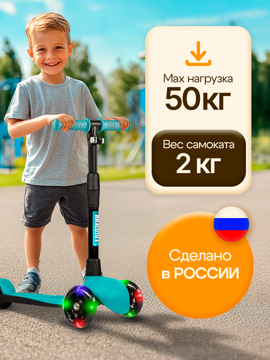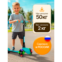 Купить Самокат трехколесный детский Босс Стайл с фонариком 3-6 лет со светящимися колесами, бирюза с доставкой по всей России.