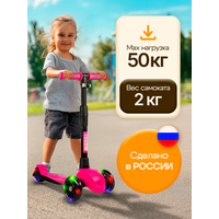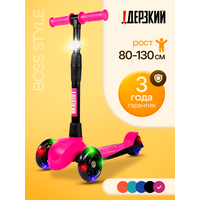 Купить Самокат трехколесный детский Босс Стайл с фонариком 3-6 лет со светящимися колесами, розовый с доставкой по всей России.