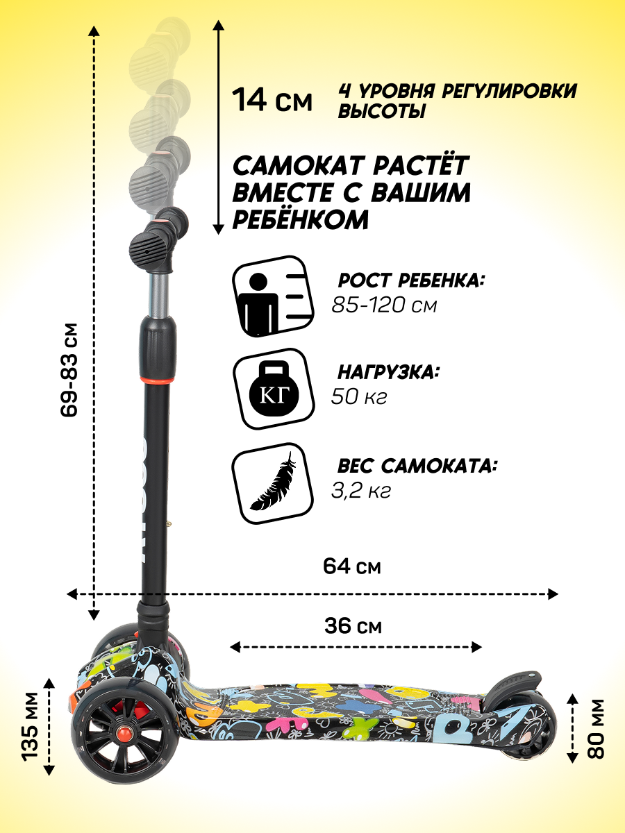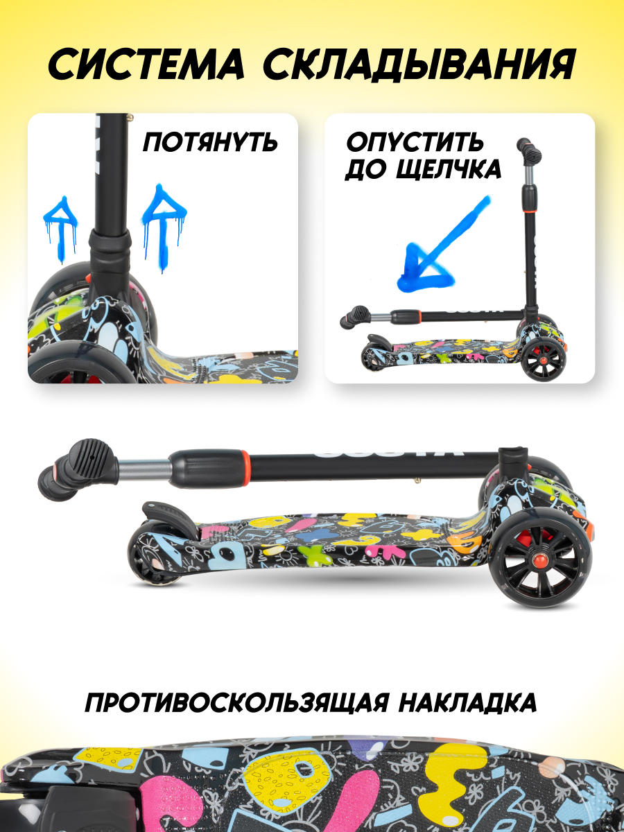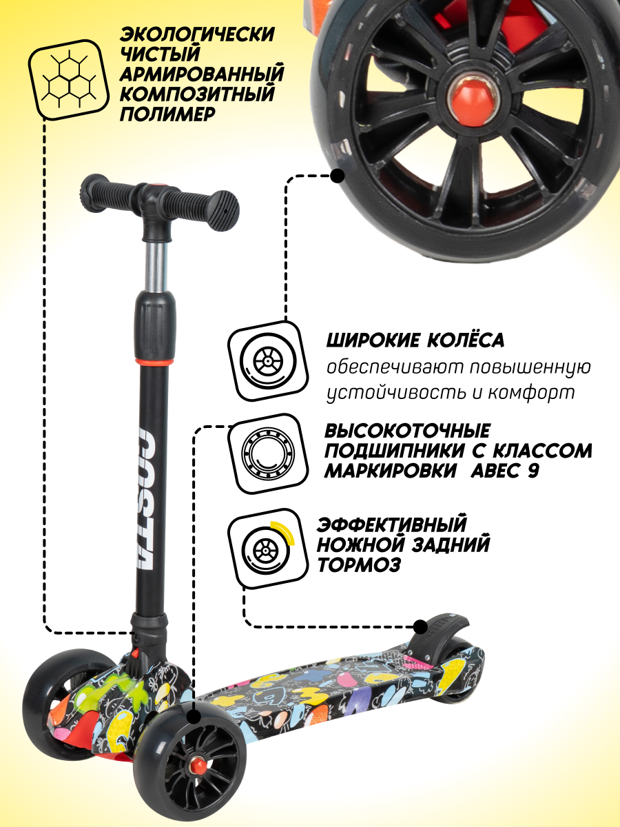 Самокат детский Costa FG11, для мальчиков и девочек, складной, с регулируемой высотой руля, граффити черный: сравнение цен, характеристики, фото, актуальное наличие и цены.