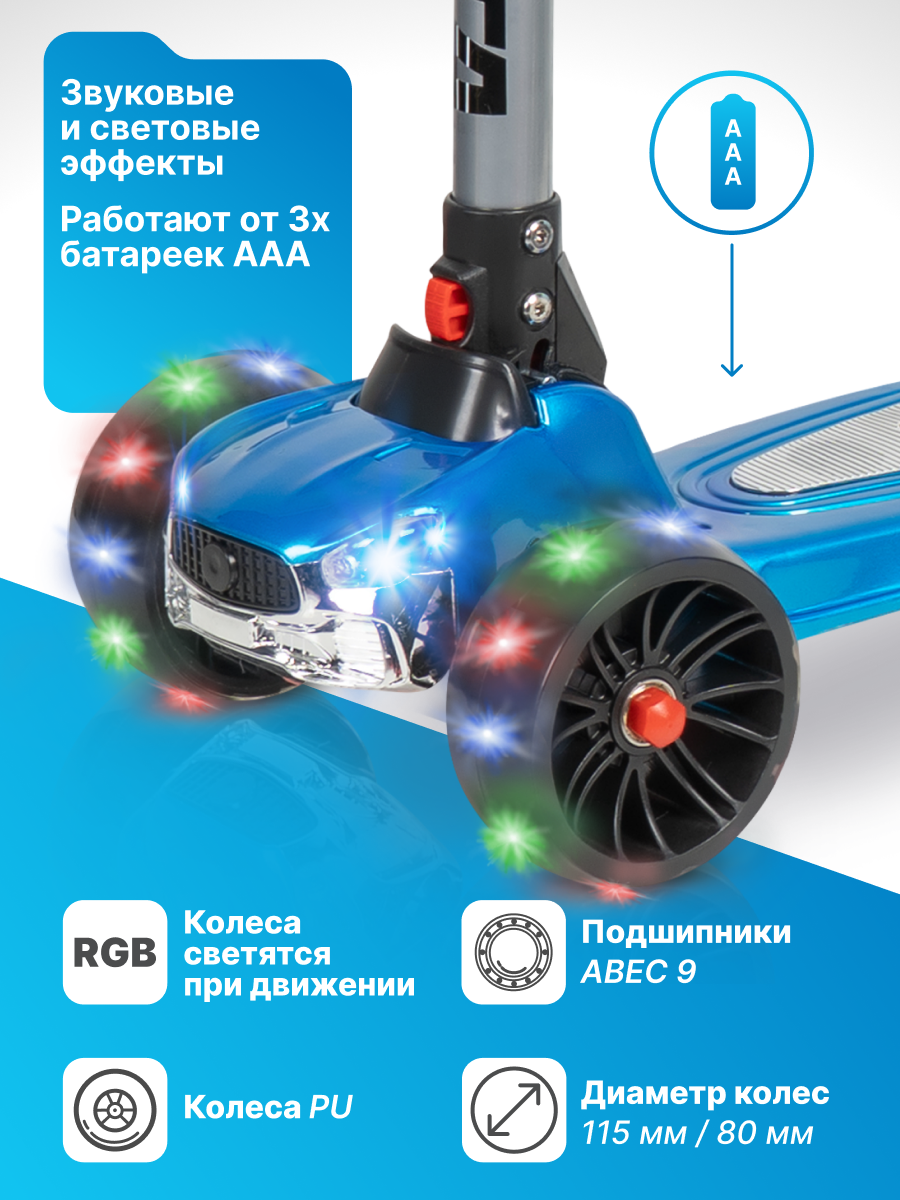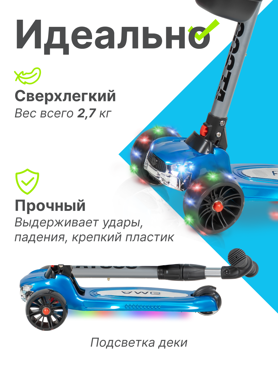 Купить Самокат Costa FGF-1254, детский, трехколесный, легкий, складная конструкция, синий с доставкой по всей России.